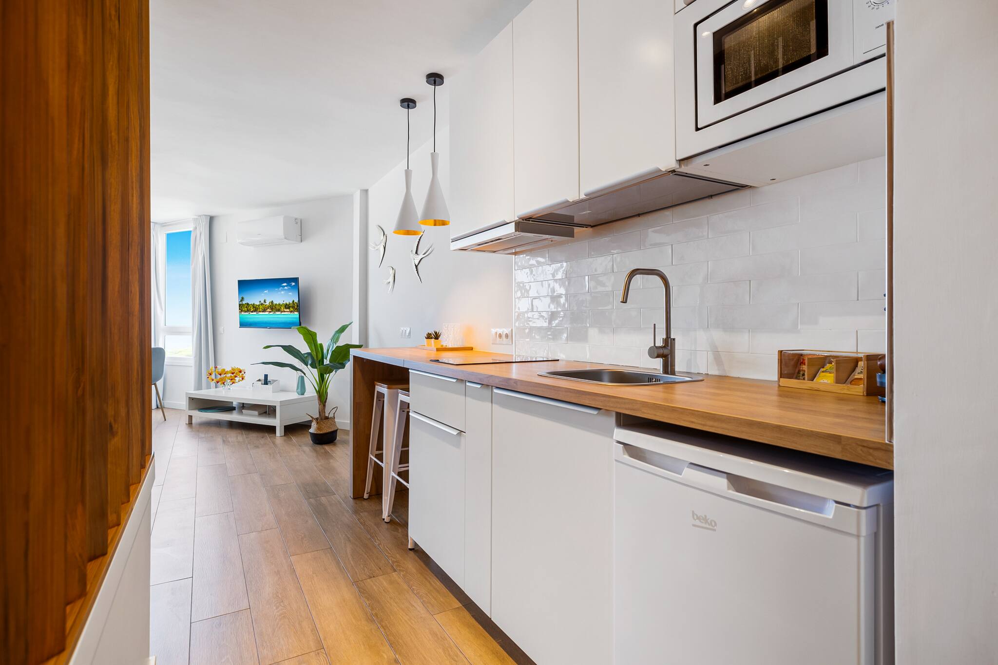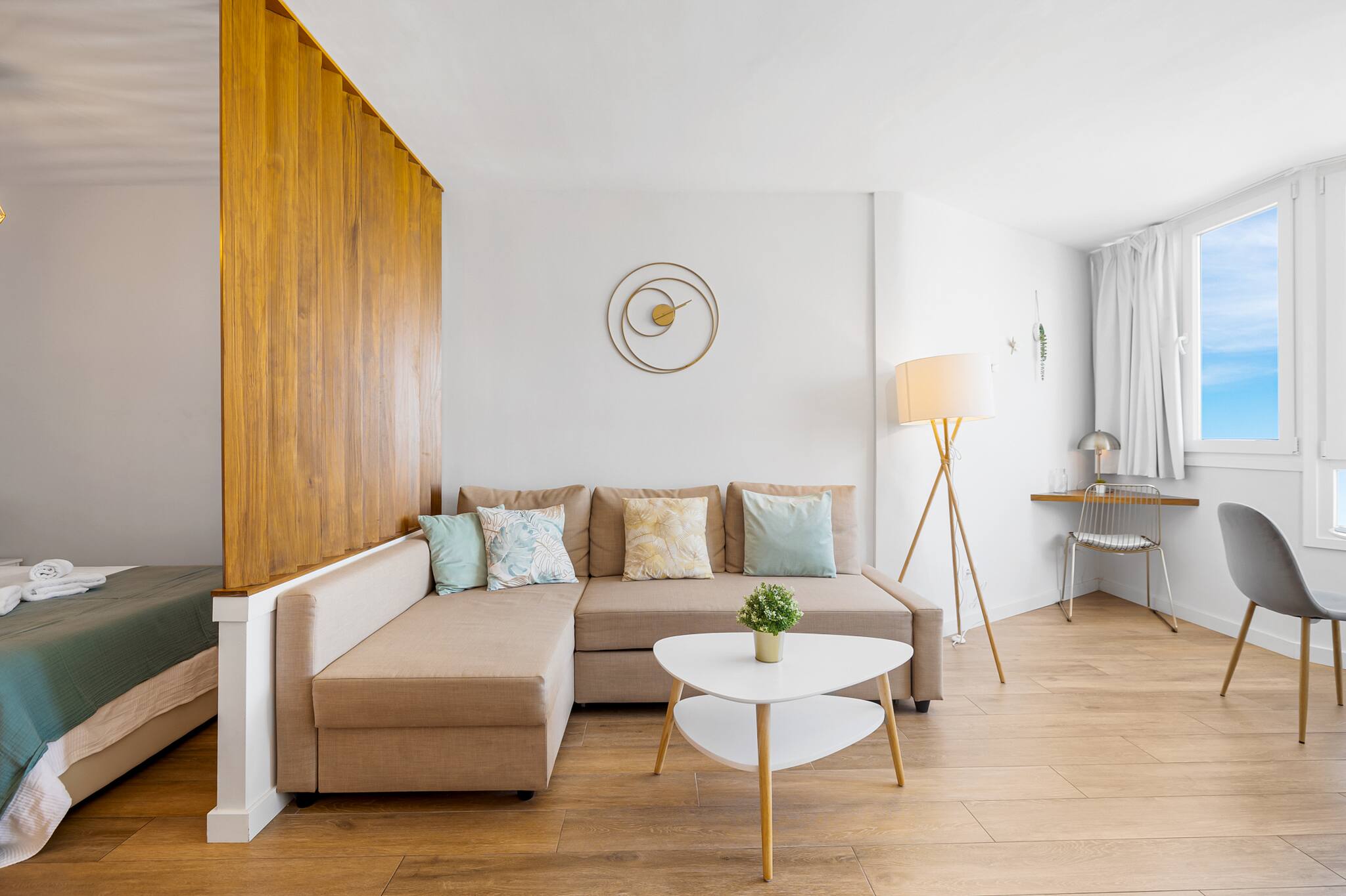La decoración del estudio es totalmente moderna, y cálida, cuidando los detalles, para que nuestros huéspedes se sientan como en su casa.