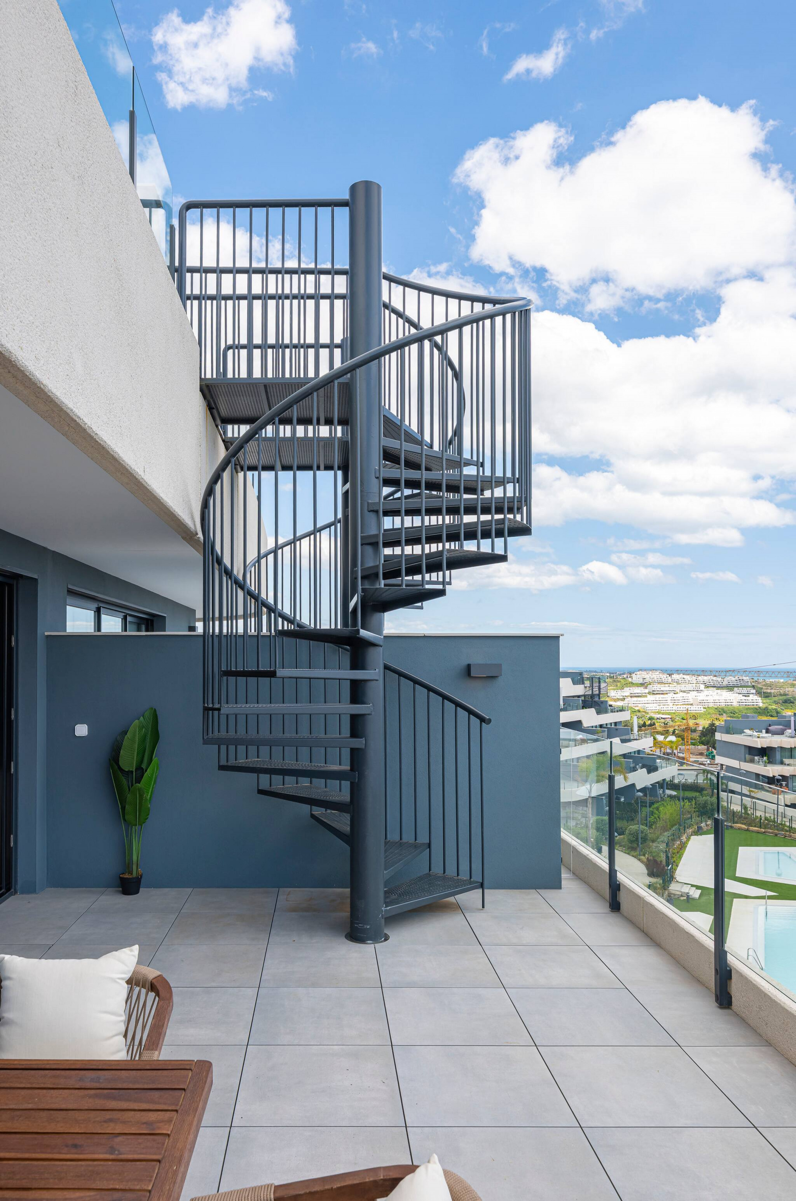 ¡Les damos la bienvenida a esta increíble urbanización en Estepona! A tan solo 10 min en coche de la playa, el penthouse cuenta con la más hermosa vista al mar. Dispone de todas las comodidades para hacer de tu estadía unas vacaciones inolvidables. Equipado para recibir hasta 6 huéspedes, el piso se distribuye del siguiente modo: