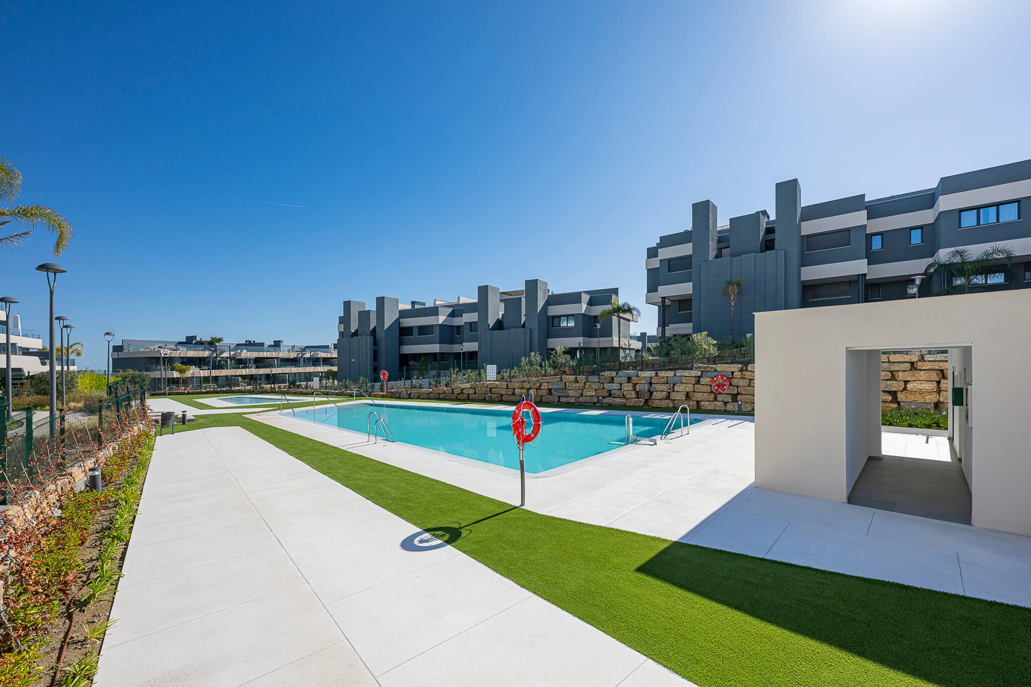 - Acceso a dos piscinas exteriores comunitarias y zonas ajardinadas, perfectas para disfrutar del aire libre.