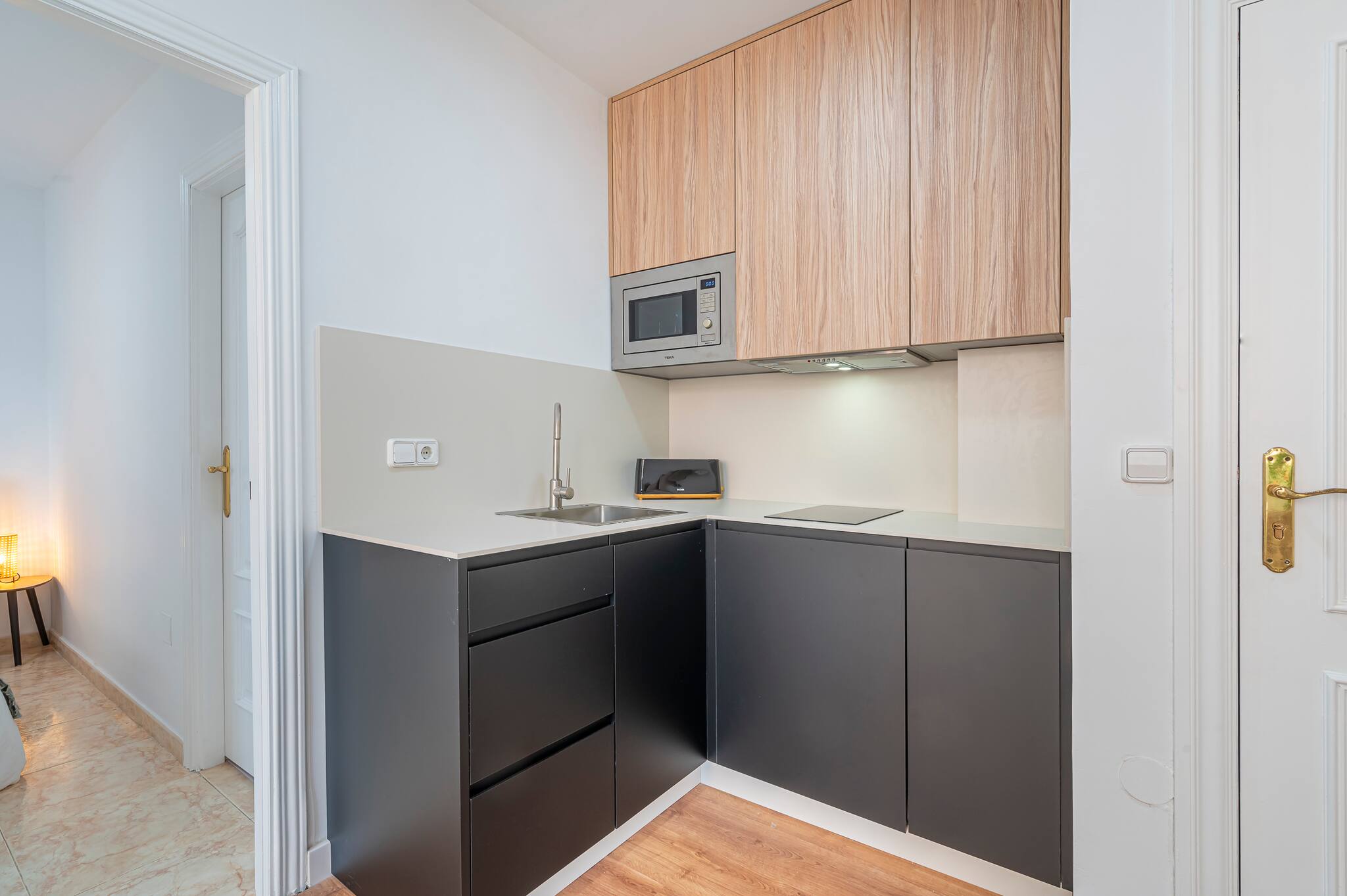 >Cocina-comedor: El apartamento cuenta con una cocina con 2 hornallas de vitrocerámica, microondas, máquina de café, hervidor de agua, tostadora y una alacena. Está equipado con vajilla completa y utensilios necesarios para disfrutar de una rica comida.
