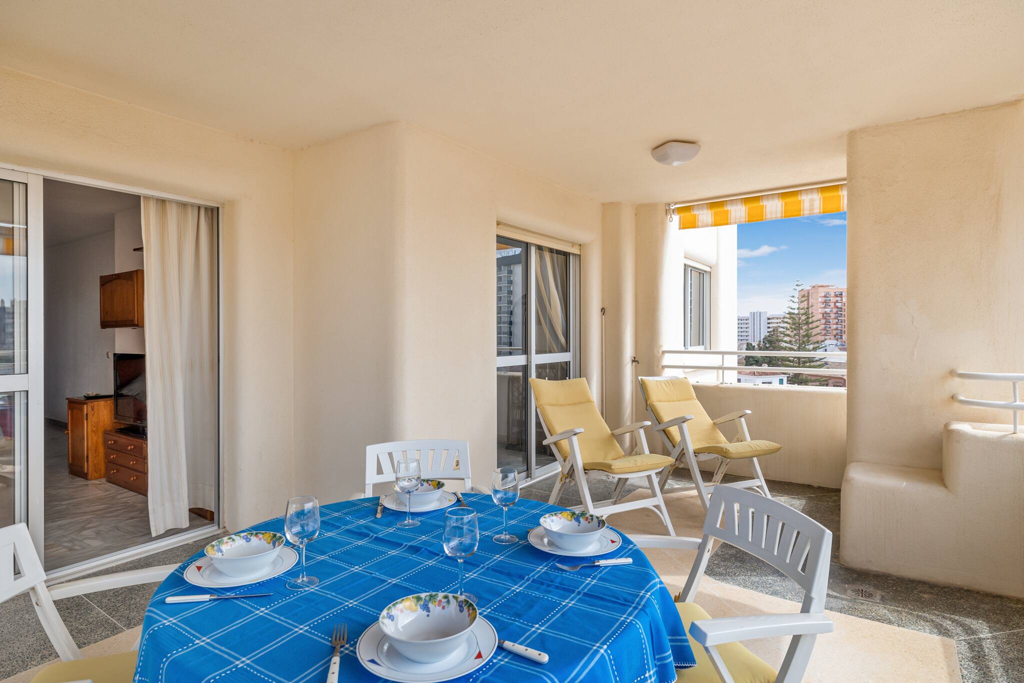 > Balcón: con hermosas vistas a la ciudad y lo lejos el mar, ofrece una mesa con sillas y dos tumbonas para poder disfrutar de un momento relajado.