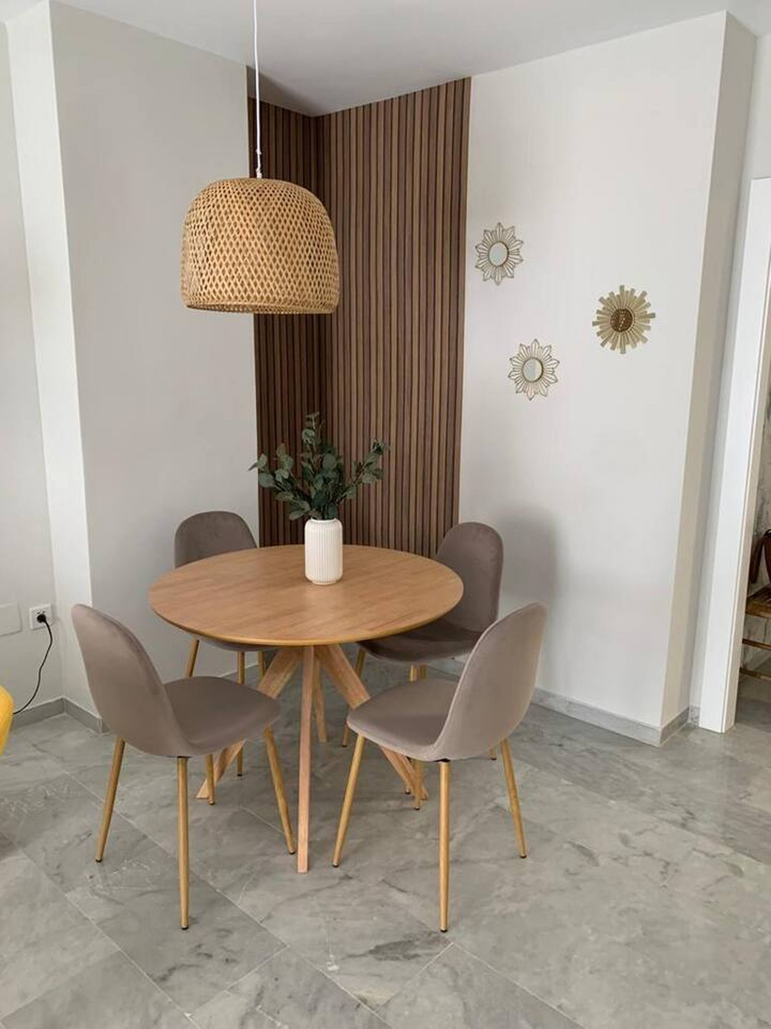 > Living Comedor: mesa y sillas para disfrutar de ricas comidas, un amplio sofá cama para disfrutar de la televisión, y salida a la terraza.