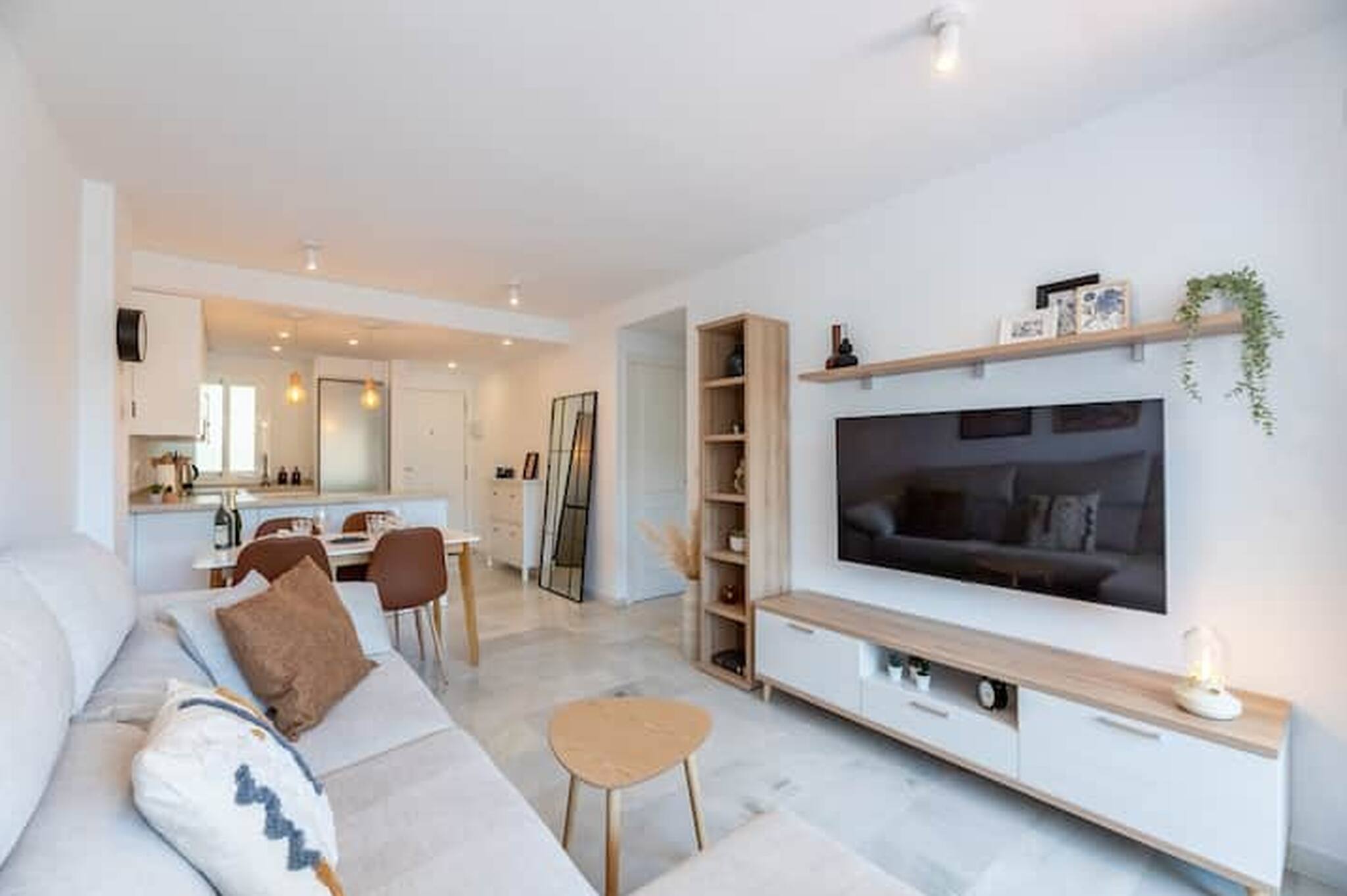 > Salón y Comedor: área espaciosa y elegante con Smart TV y muebles contemporáneos, así como un sofá cómodo.