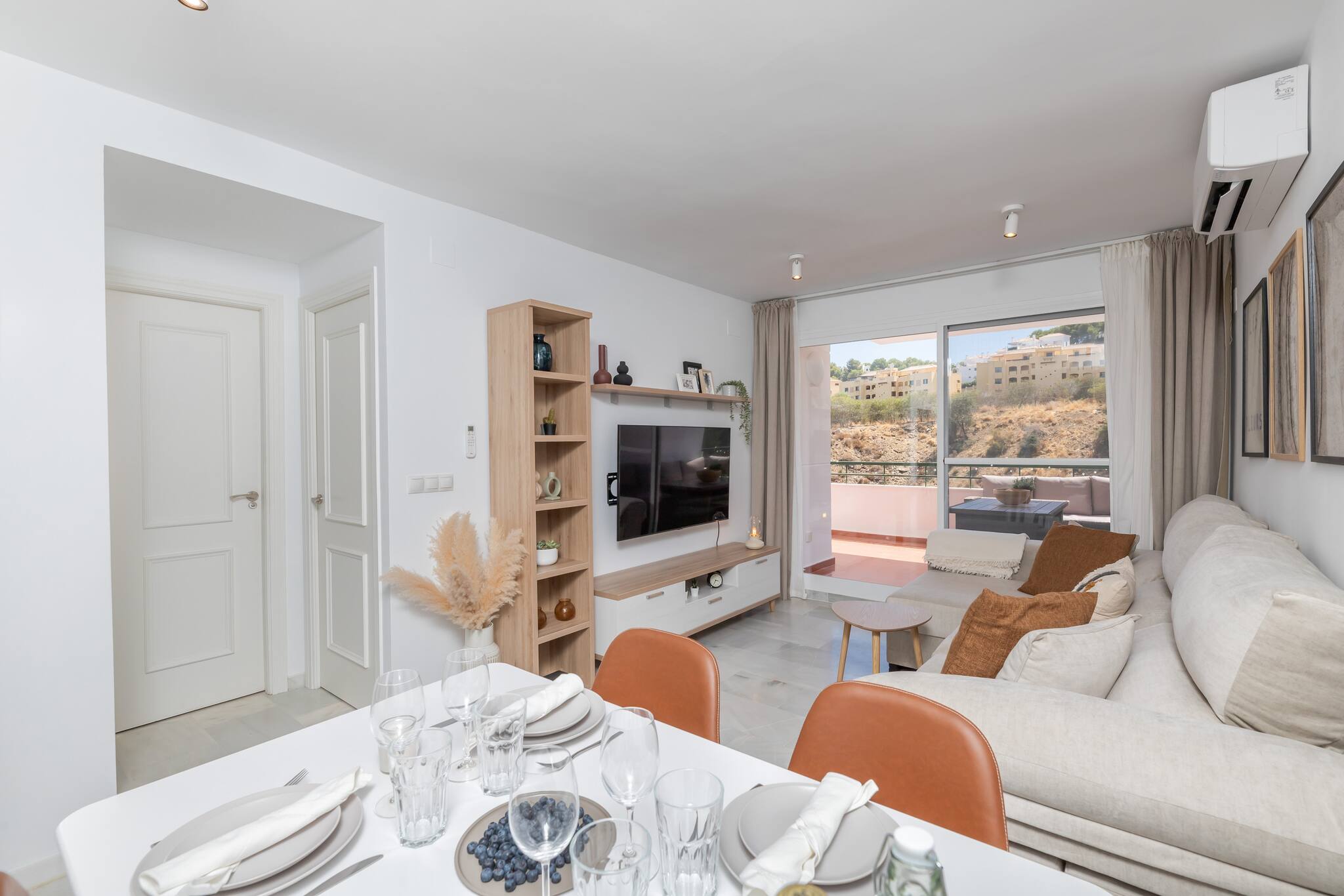 Hermoso apartamento de dos habitaciones con balcón, ideal para recibir hasta 4 huéspedes, diseñado para ofrecer una estancia relajante y cómoda. La decoración en tonos cálidos y los detalles cuidadosamente seleccionados crean un ambiente acogedor desde el momento en que entráis. Además, podréis disfrutar de una piscina comunitaria y una pista de Paddle, ideales para momentos de ocio.