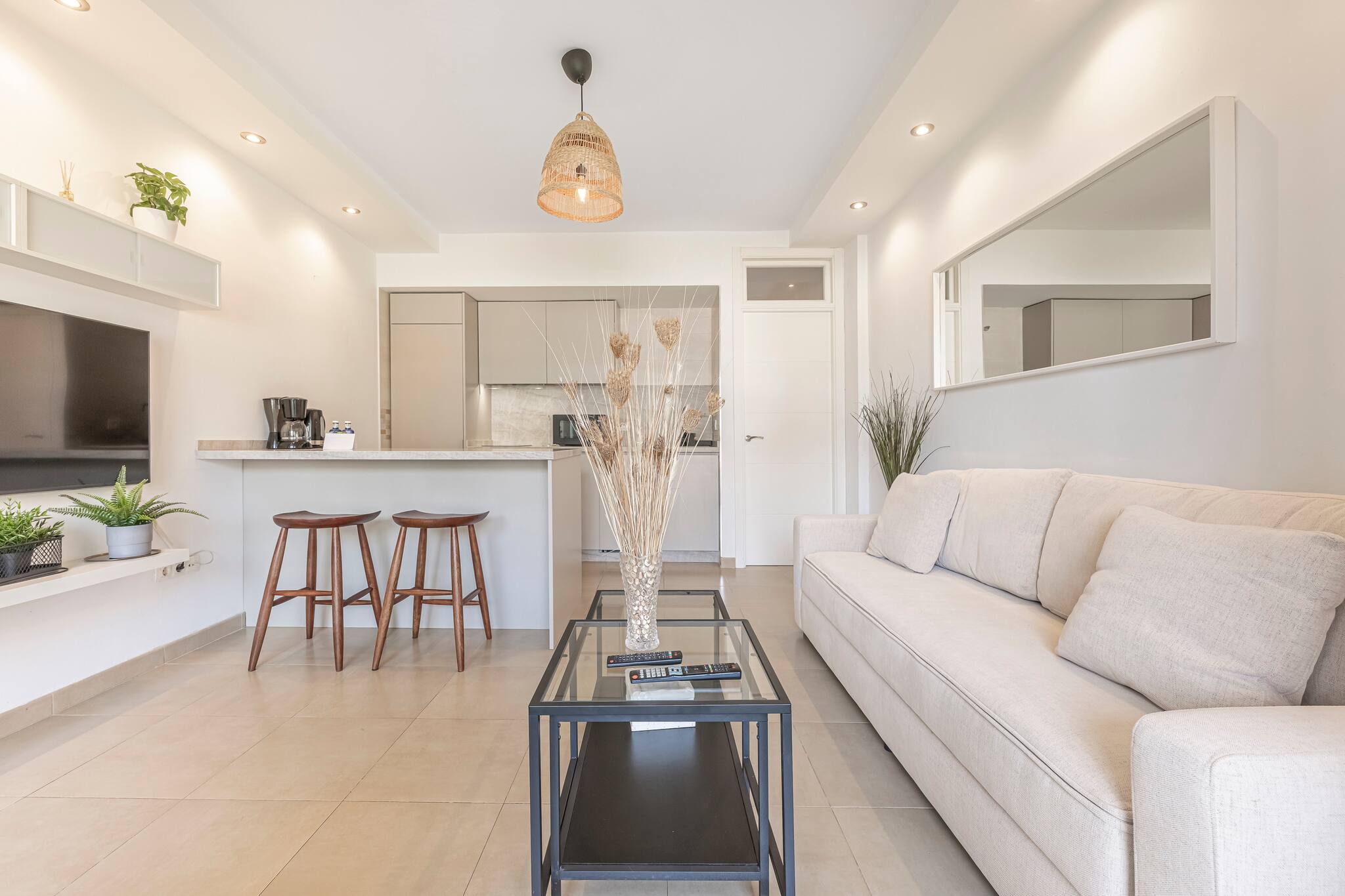La decoración del piso es moderna y cálida, cuidando cada detalle, con suelos de microcemento en todo el apartamento, incluido el baño y la terraza, para que nuestros huéspedes se sientan como en casa. ¡Esperamos que disfrutes de tu estancia!