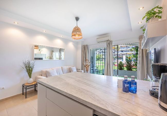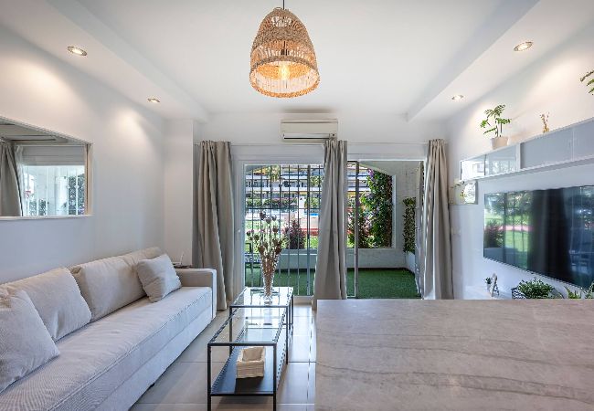 ¡Bienvenidos a Marbella! En la espléndida urbanización de Carolina Park ofrecemos este acogedor apartamento en planta baja con capacidad para 4 personas. Con una decoración encantadora y a su vez, con todas las comodidades para una estancia confortable. Este departamento se distribuye del siguiente modo: