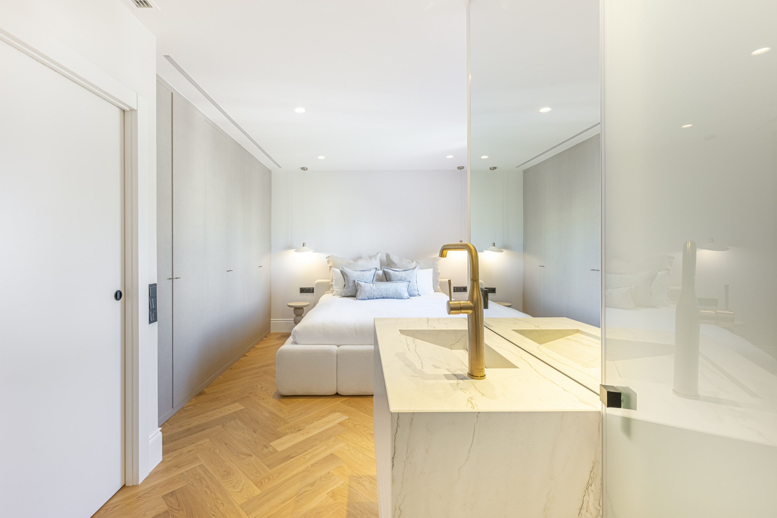El apartamento cuenta con 2 amplios dormitorios, ambos con baños ensuite, así como un gran salón con balcón y una cocina abierta diseñada para aprovechar al máximo el espacio. Todas las estancias están equipadas con Smart TV, y la vivienda ha sido reformada íntegramente con materiales modernos y de alta calidad.