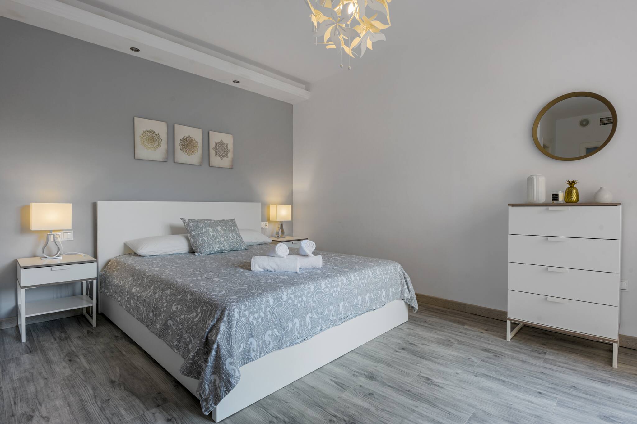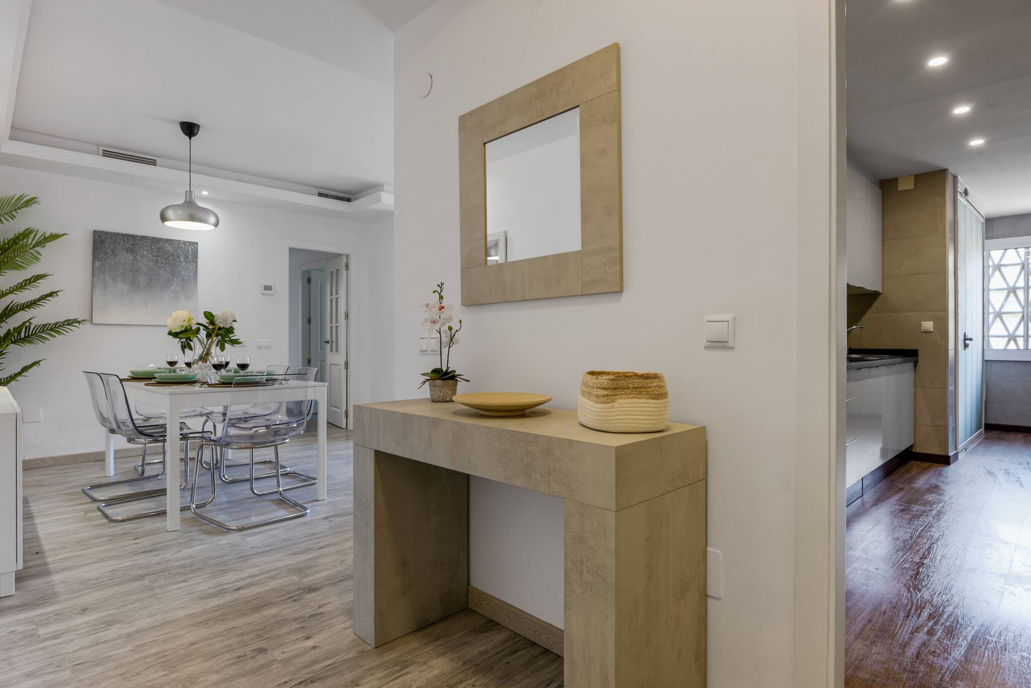 Elegante y cómodo piso en Las Chapas a 3 minutos de la playa. El apartamento está en la primera planta y disponible para recibir 6 huéspedes.