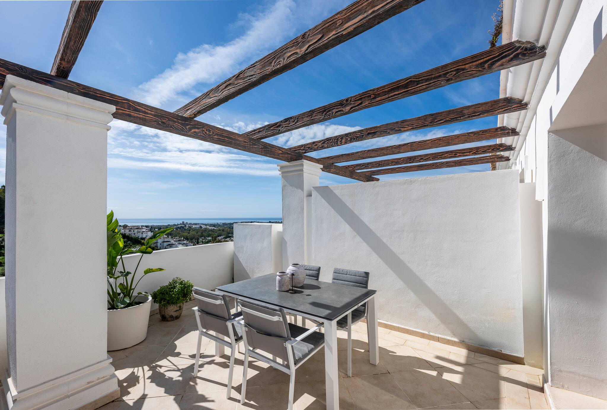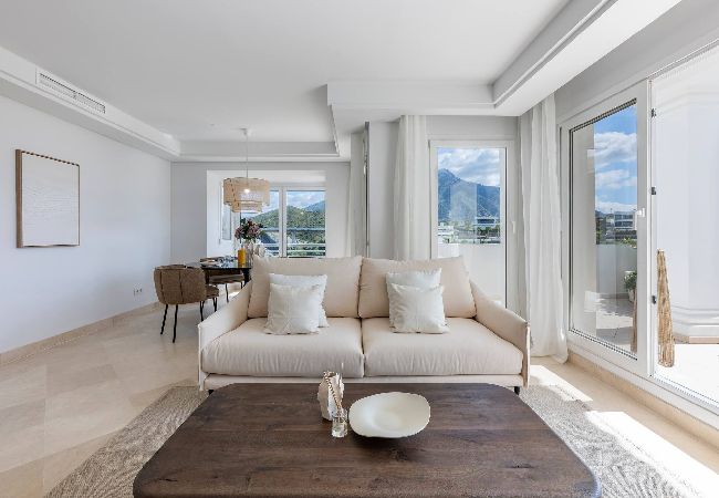 Este elegante apartamento de Nueva Andalucía está ubicado en la segunda planta. Cuidadosamente decorado para que tengáis una estadía cómoda y placentera. El piso aloja hasta 4 huéspedes.
