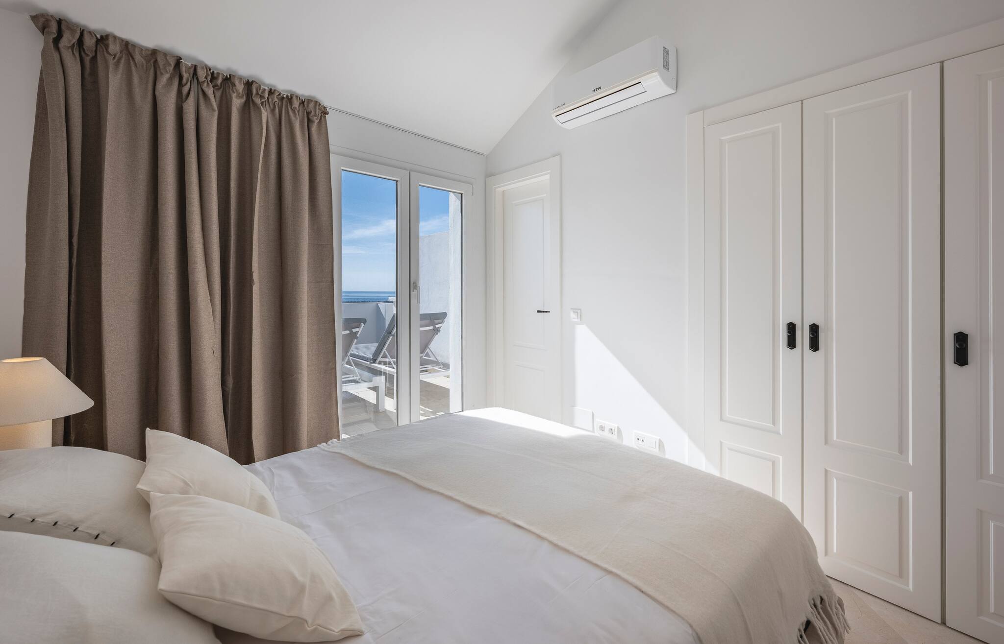 El salón cuenta con aire acondicionado y calefacción, un cómodo sofá cama y un Smart TV. Además, encontrarás una cama doble para alojar a dos huéspedes, con un armario de cinco puertas totalmente equipado para guardar toda la ropa y un escritorio donde podrás trabajar mientras disfrutas de las vistas a través de la luminosa ventana.