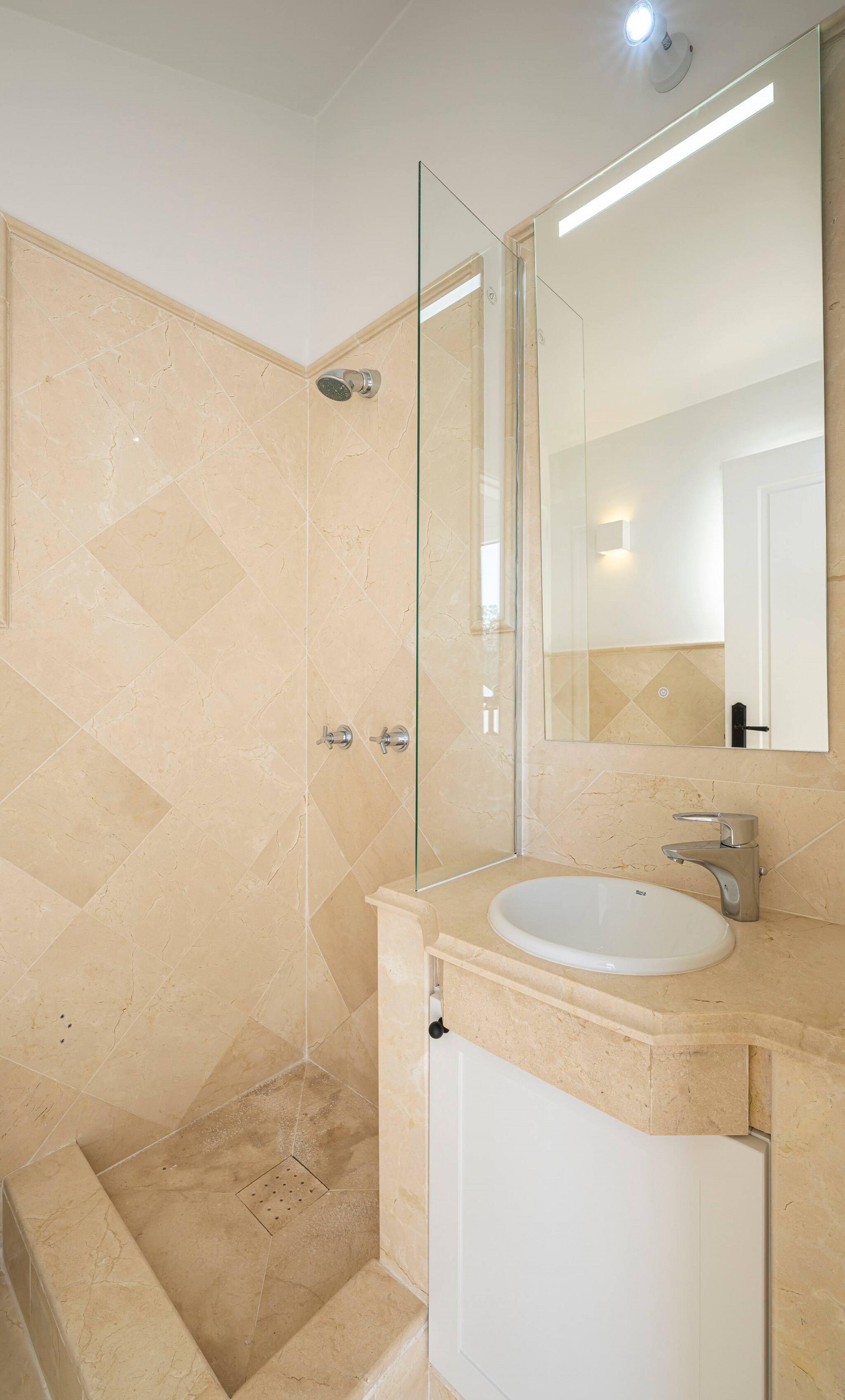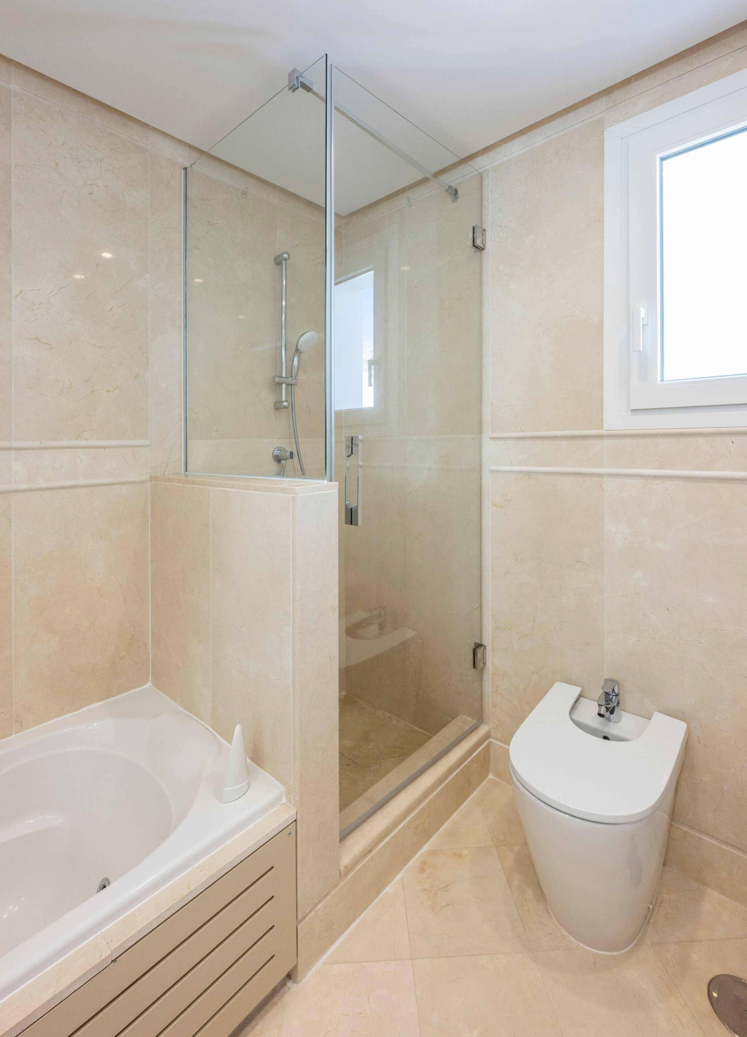 Por último, el baño cuenta con una ducha espaciosa y está totalmente equipado.