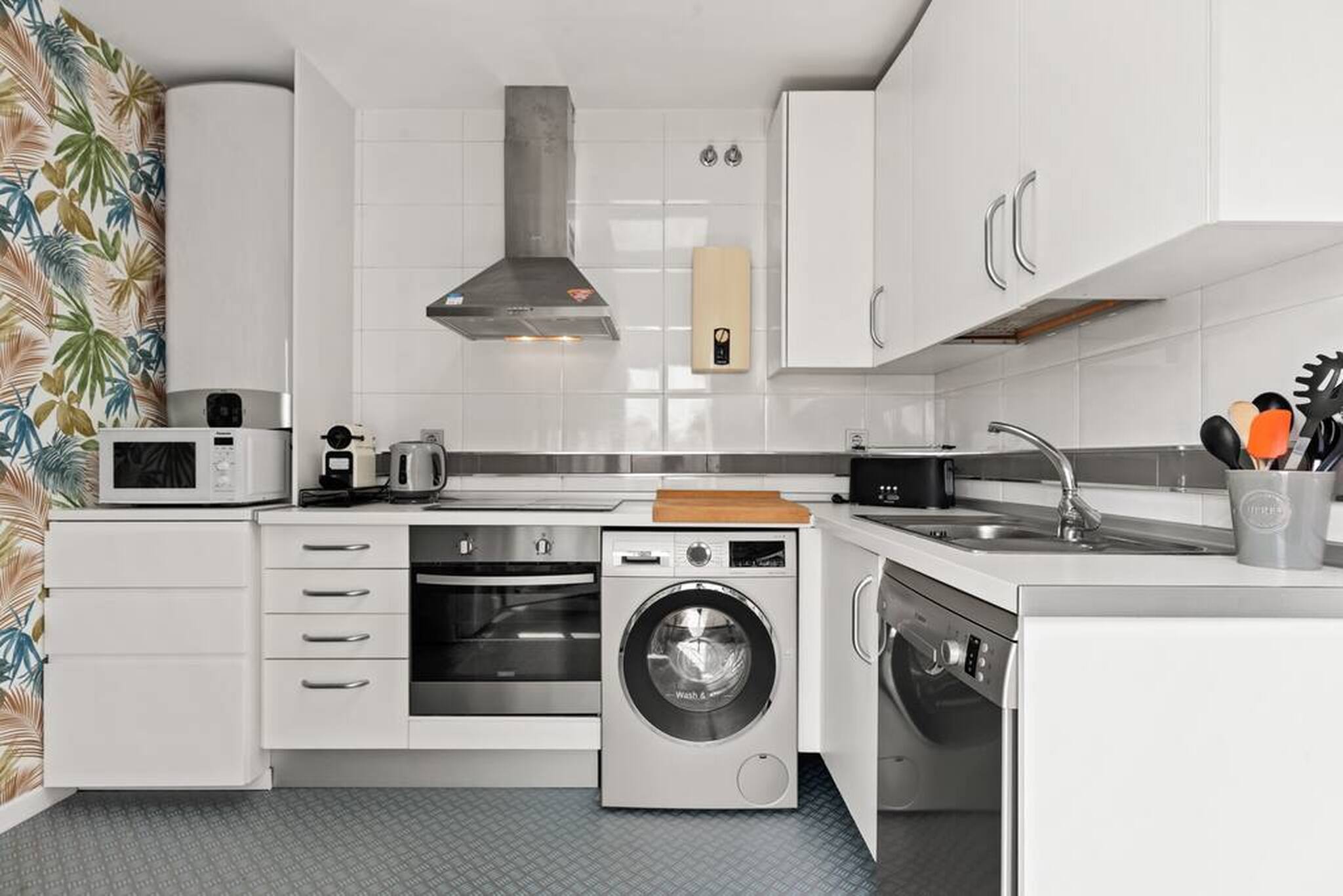 >Cocina: La cocina es moderna y cómoda, separada del saló. Está completamente equipada con todo lo que podríais necesitar: nevera, horno, vitrocerámica, microondas, lavavajillas, cafetera, calentador de agua, tostadora, lavadora, vajilla completa y amplio espacio de guardado. Aquí podréis preparar vuestras comidas favoritas con facilidad y disfrutar de un desayuno rápido o una cena elaborada.