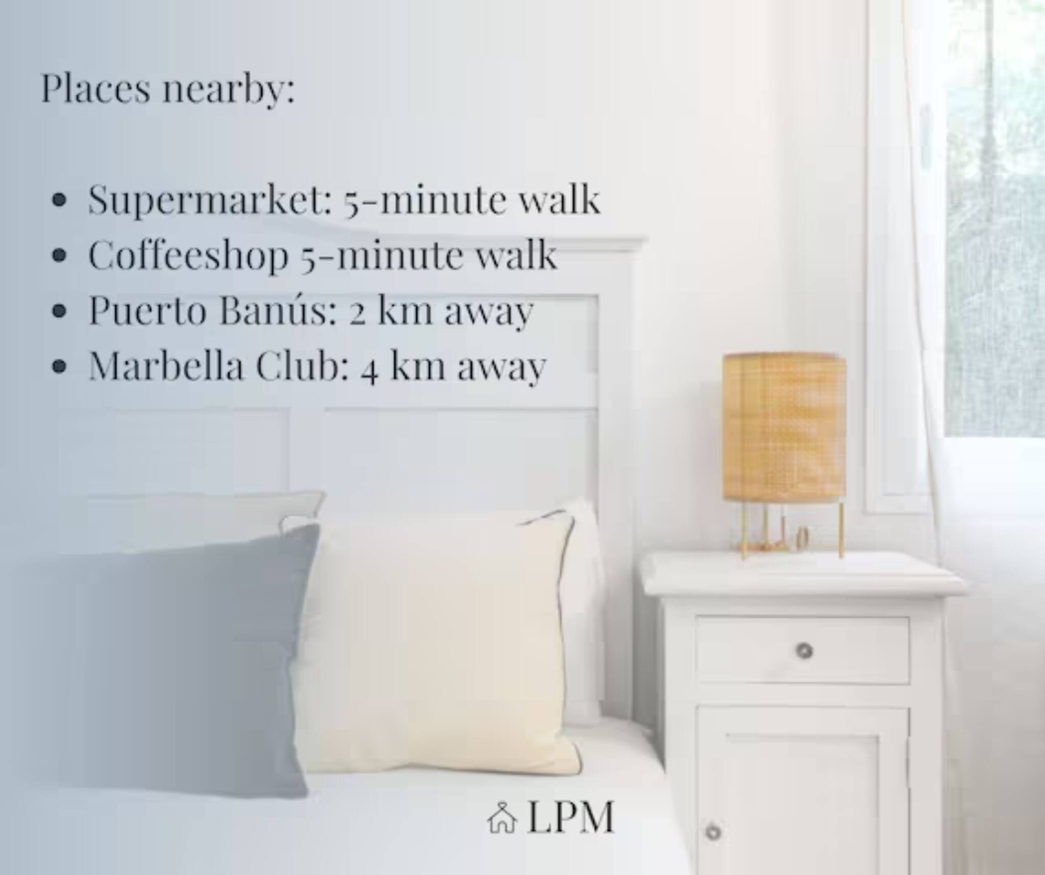 - Hoteles como Marbella Club a tan solo 670m y Puente Romano 1km.