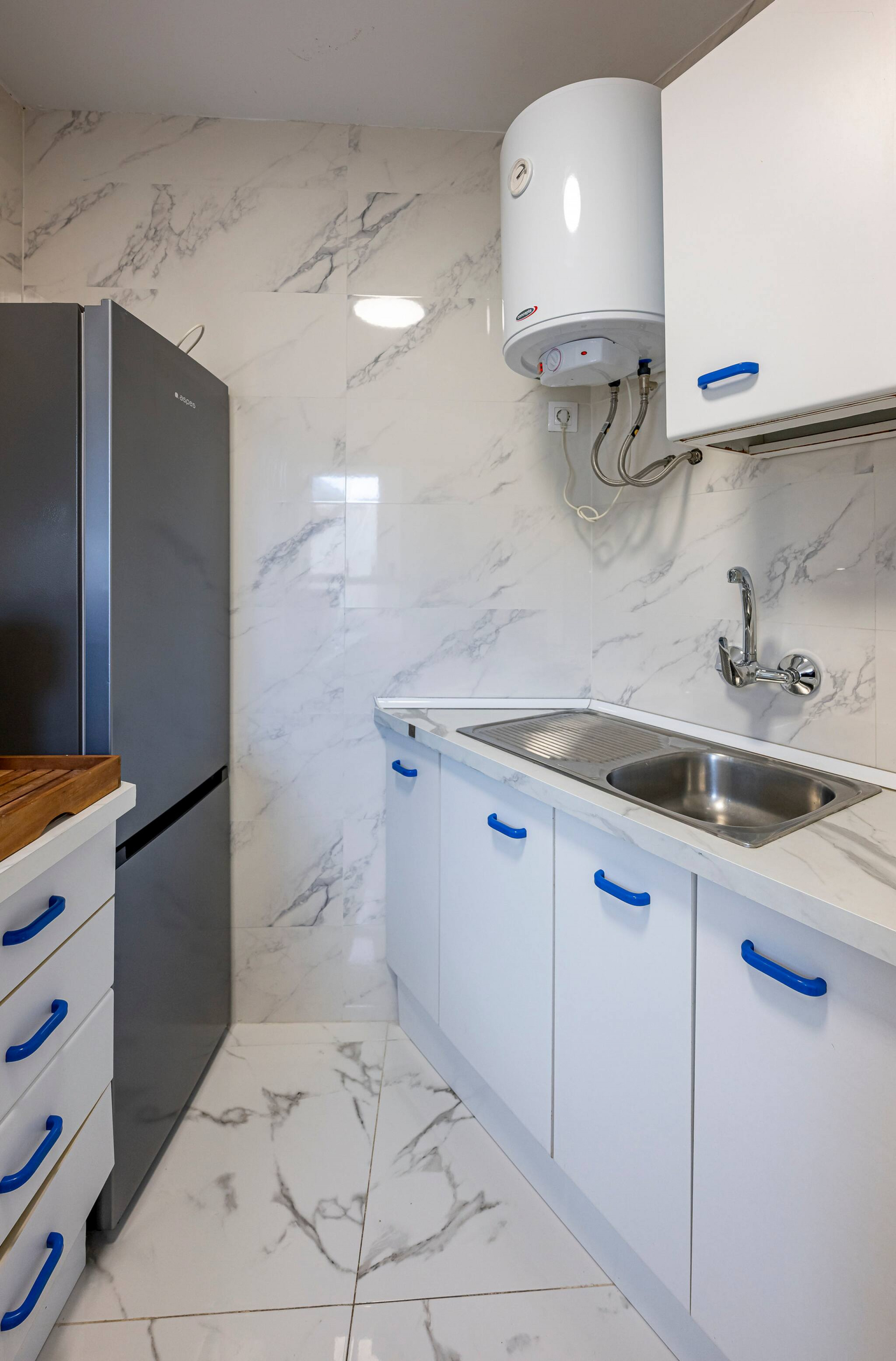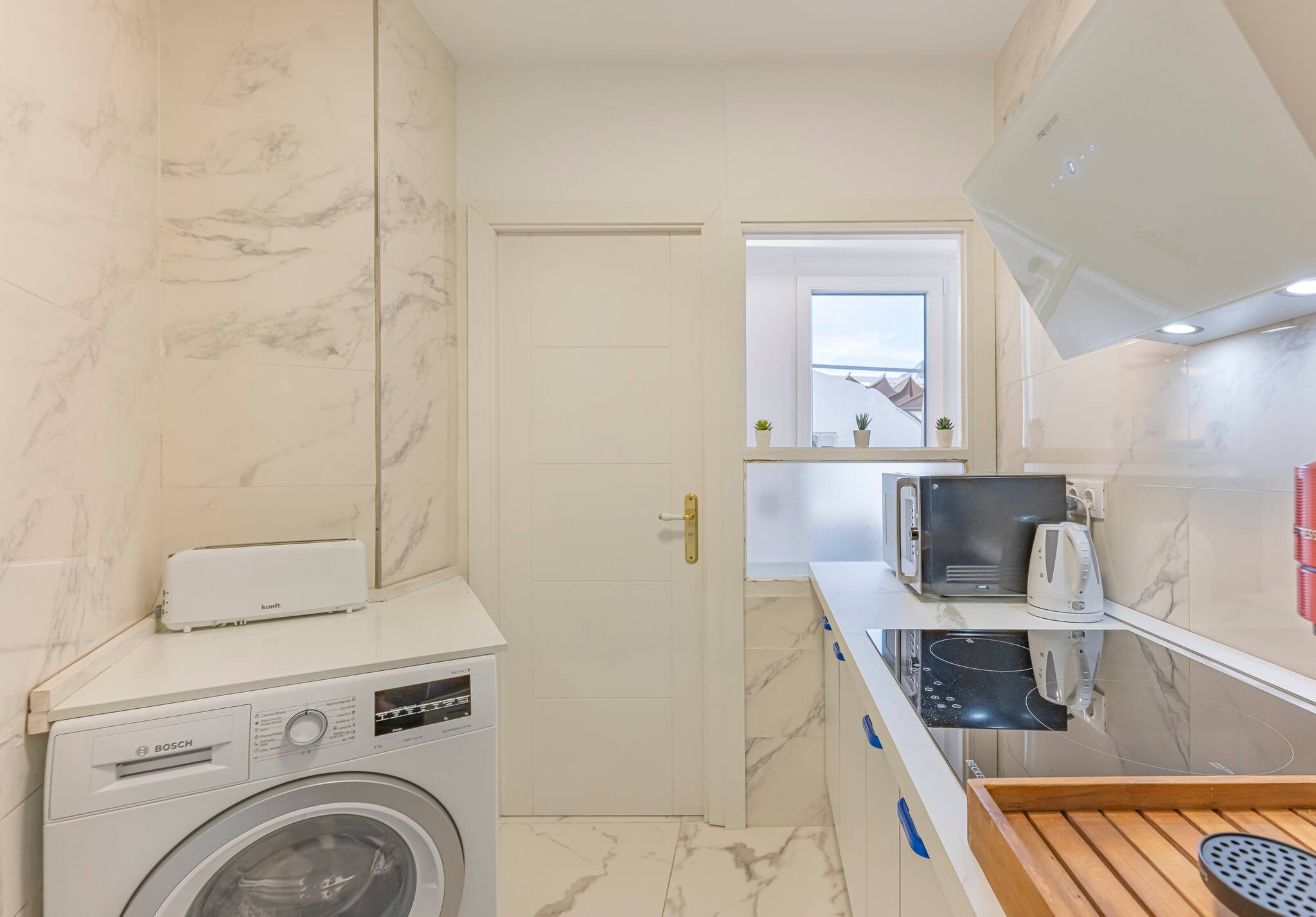 >Cocina: La cocina, separada del área de estar, está completamente equipada con todos los electrodomésticos necesarios para preparar comidas con comodidad. También incluye una lavadora, facilitando la estancia en estancias más largas.