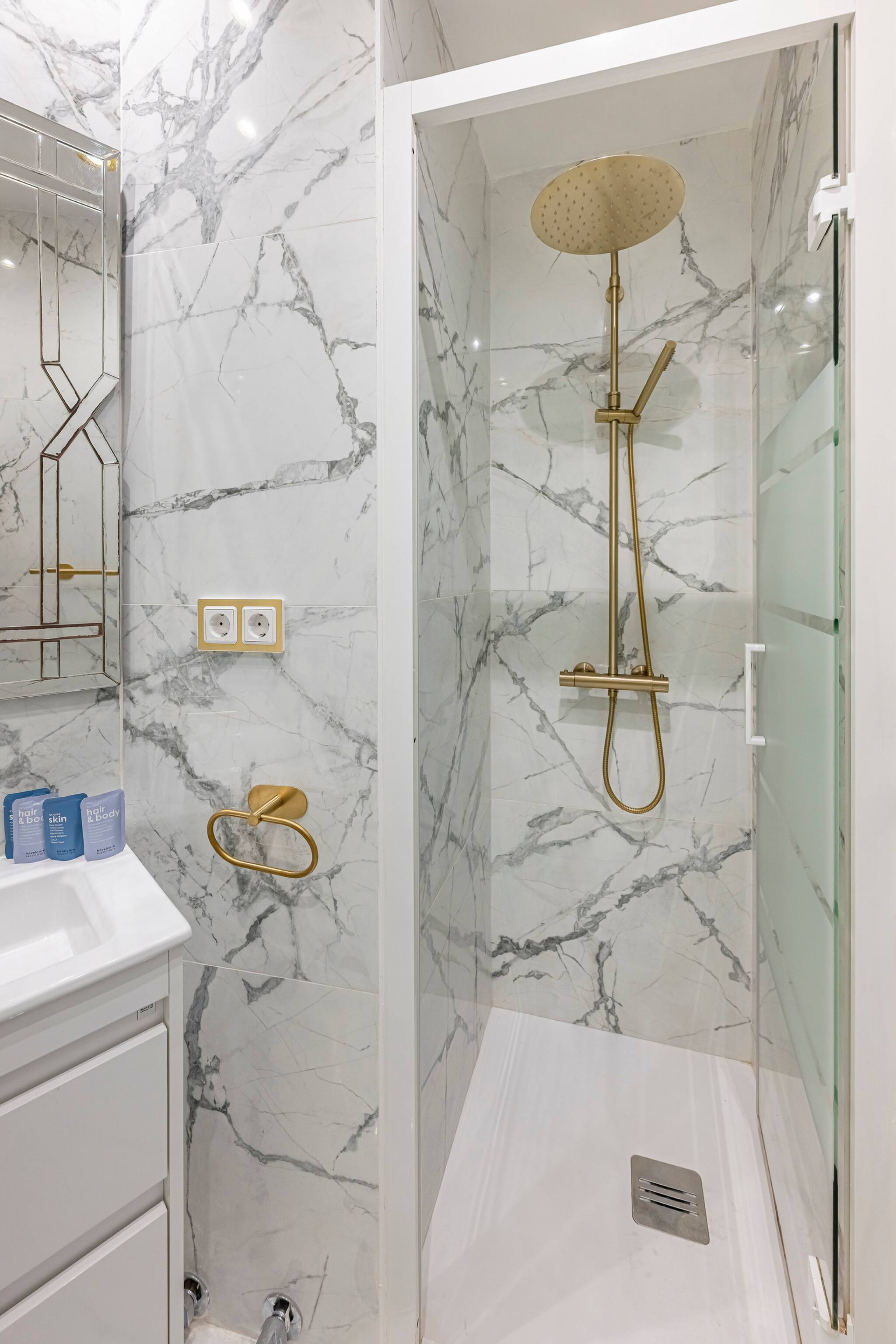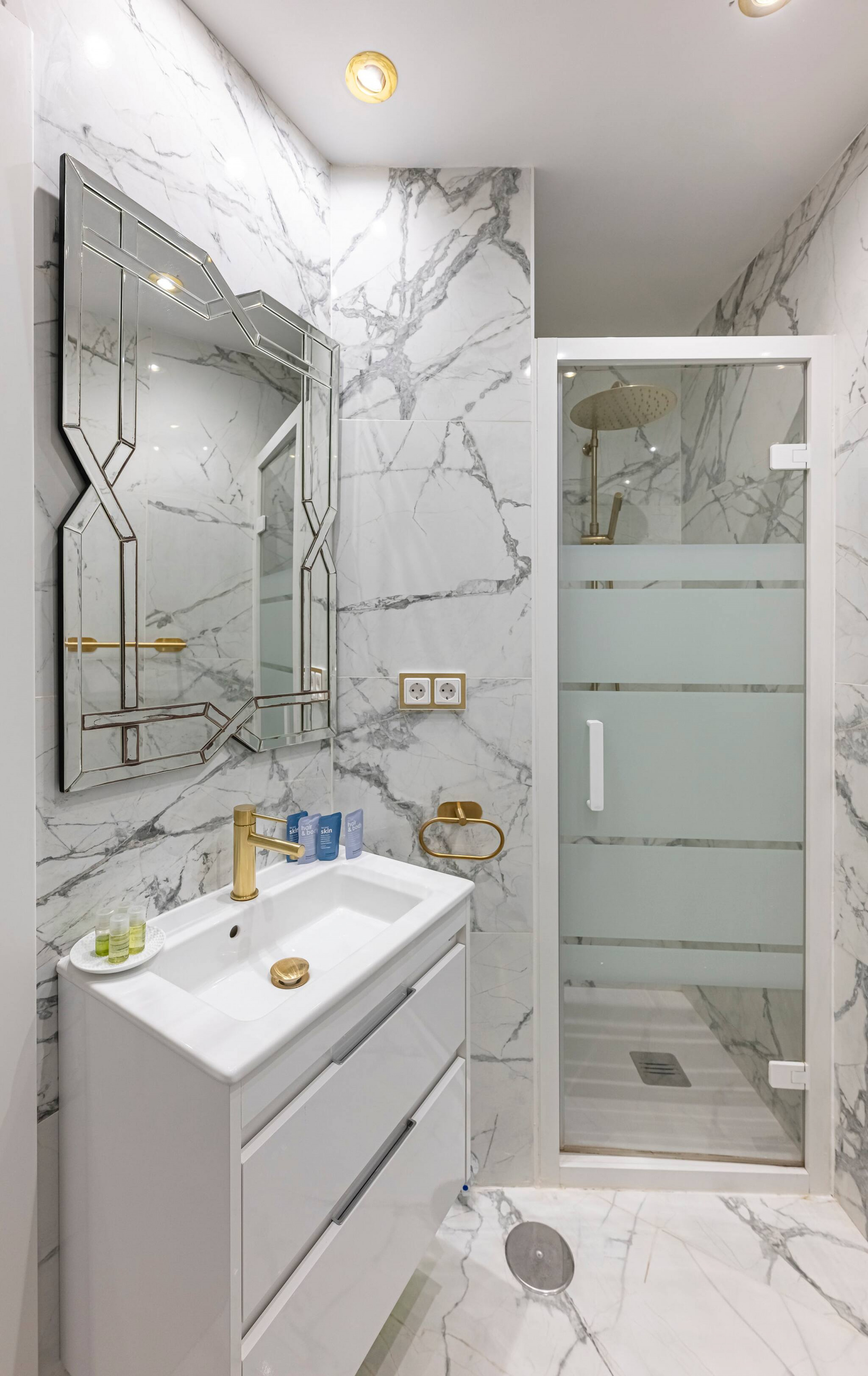 Por último, el baño cuenta con una ducha espaciosa y está totalmente equipado.