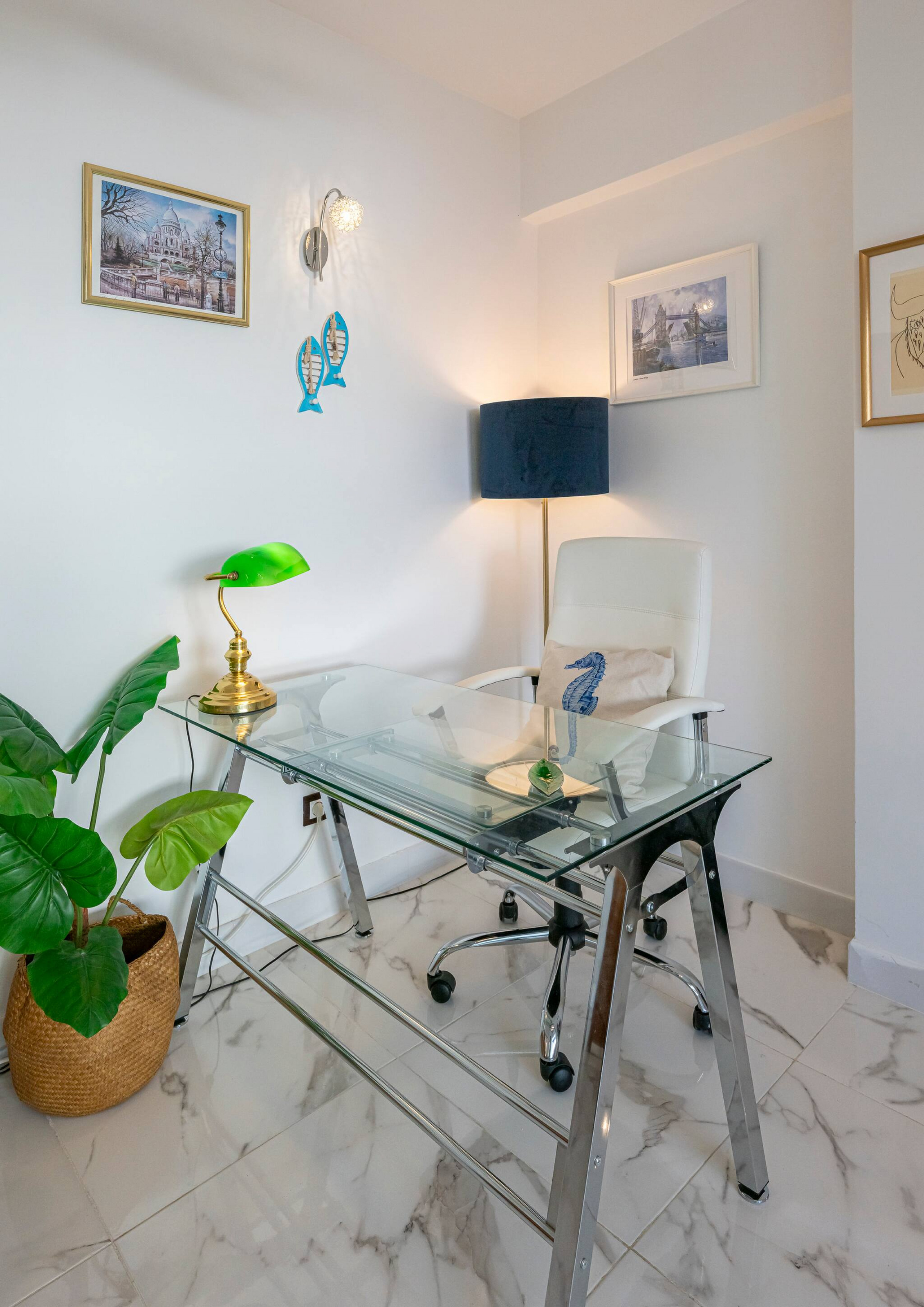 El salón cuenta con aire acondicionado y calefacción, un cómodo sofá cama y un Smart TV. Además, encontrarás una cama doble para alojar a dos huéspedes, con un armario de cinco puertas totalmente equipado para guardar toda la ropa y un escritorio donde podrás trabajar mientras disfrutas de las vistas a través de la luminosa ventana.