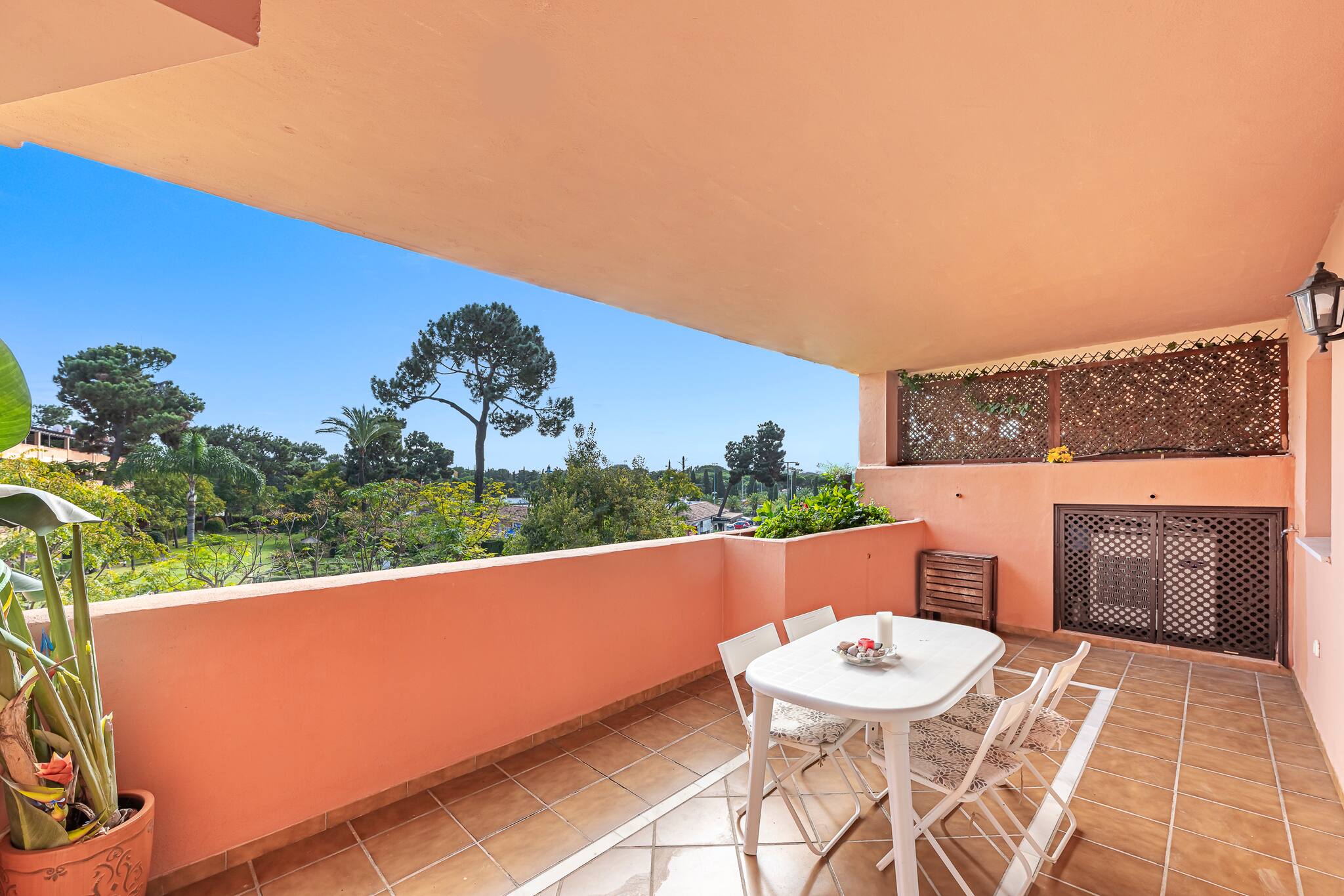 Acceso directo a una terraza privada amueblada, con cómodos sofás exteriores para disfrutar del clima y la calma de Marbella