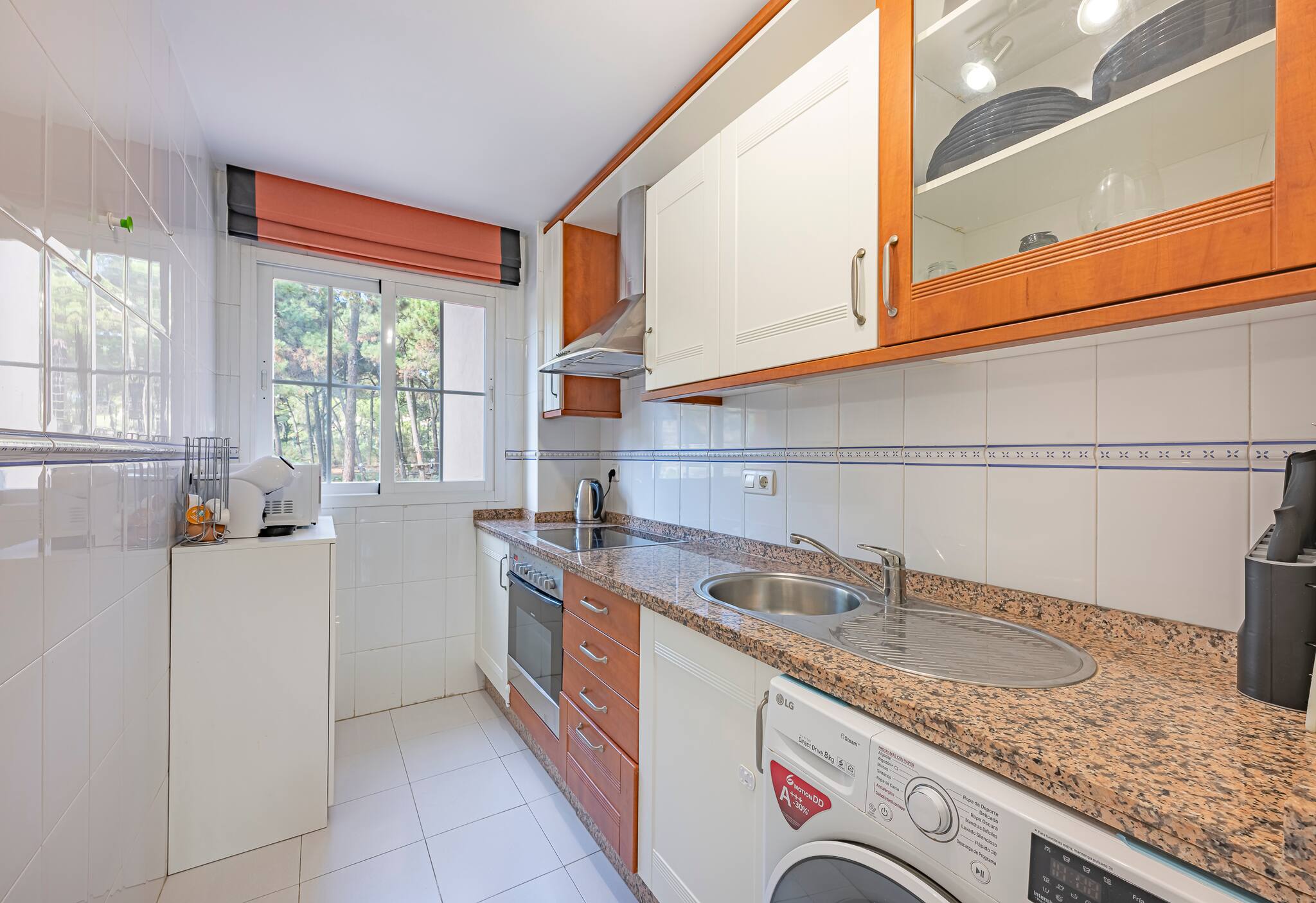 > Cocina: moderna y completa, con horno, lavavajillas, microondas, freezer, refrigerador, tostadora, hervidor de agua... y todos los utensilios que pueda necesitar durante vuestra estancia. También se proporciona una cafetera de cápsula para disfrutar de un delicioso café por la mañana.
