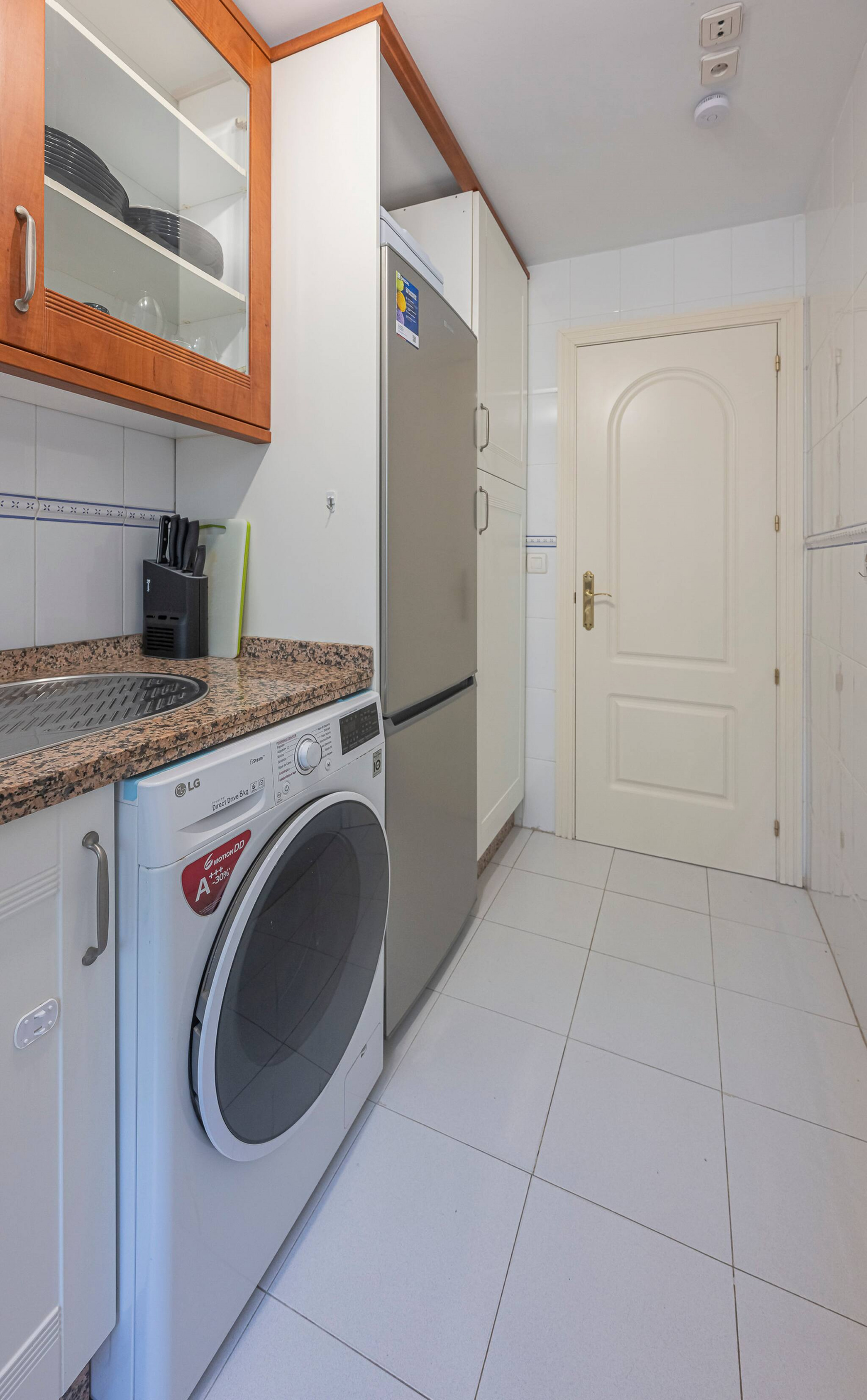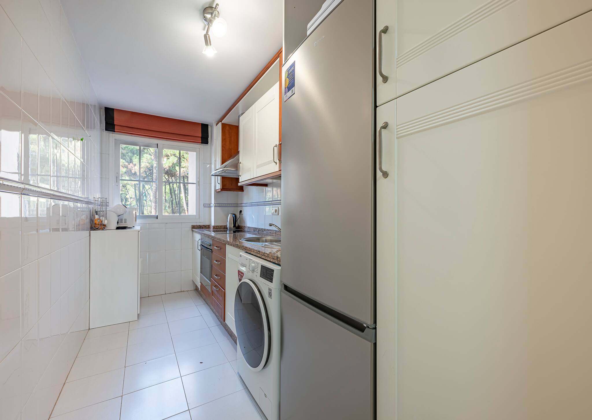 >Cocina: La cocina es moderna y cómoda, separada del saló. Está completamente equipada con todo lo que podríais necesitar: nevera, horno, vitrocerámica, microondas, lavavajillas, cafetera, calentador de agua, tostadora, lavadora, vajilla completa y amplio espacio de guardado. Aquí podréis preparar vuestras comidas favoritas con facilidad y disfrutar de un desayuno rápido o una cena elaborada.