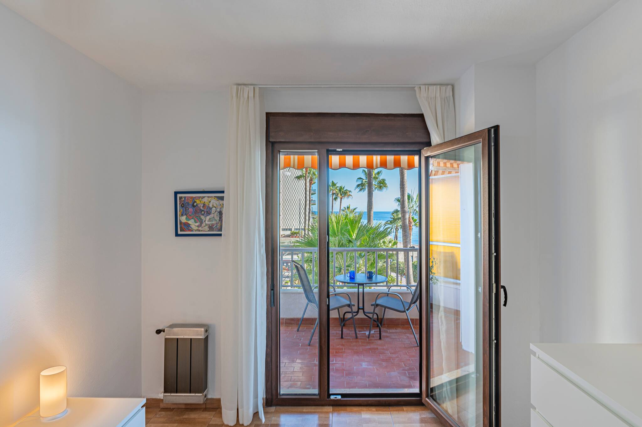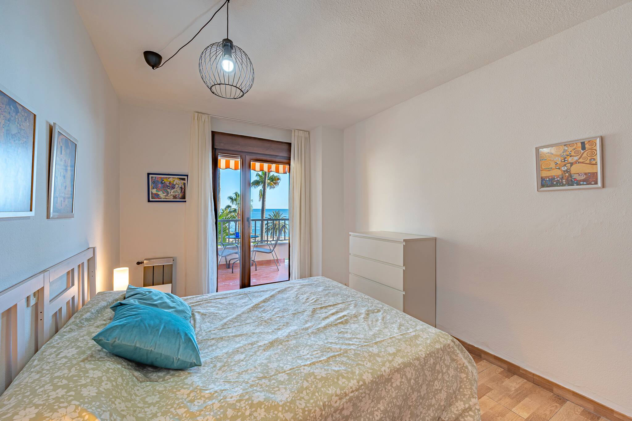 > Acogedor dormitorio con cama doble, placard amplio, cajonera y espejo. Ideal para una estancia cómoda y organizada. La gran ventana permite disfrutar de luz natural y de vistas al mar, creando un ambiente relajante y luminoso.