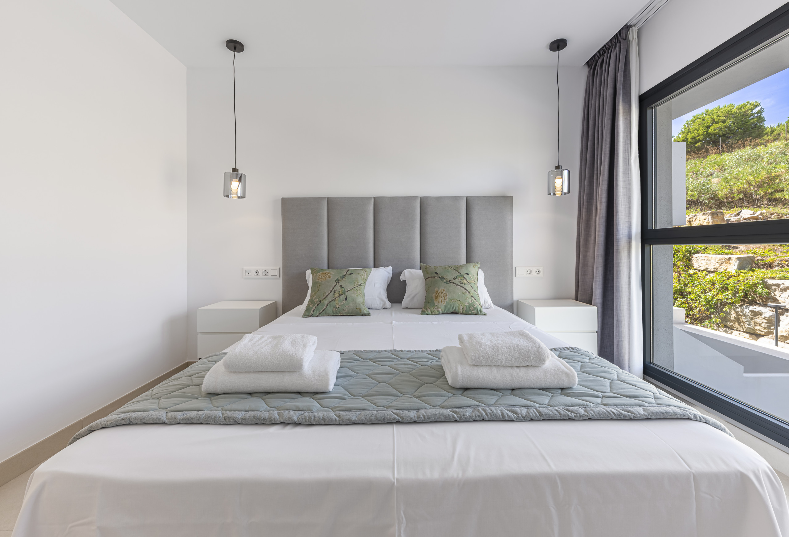 La propiedad cuenta con 2 dormitorios elegantes, ambos equipados con camas dobles de alta calidad (150 cm). Cada habitación está diseñada para proporcionar una atmósfera de descanso con sábanas de primera calidad incluidas en su estancia.