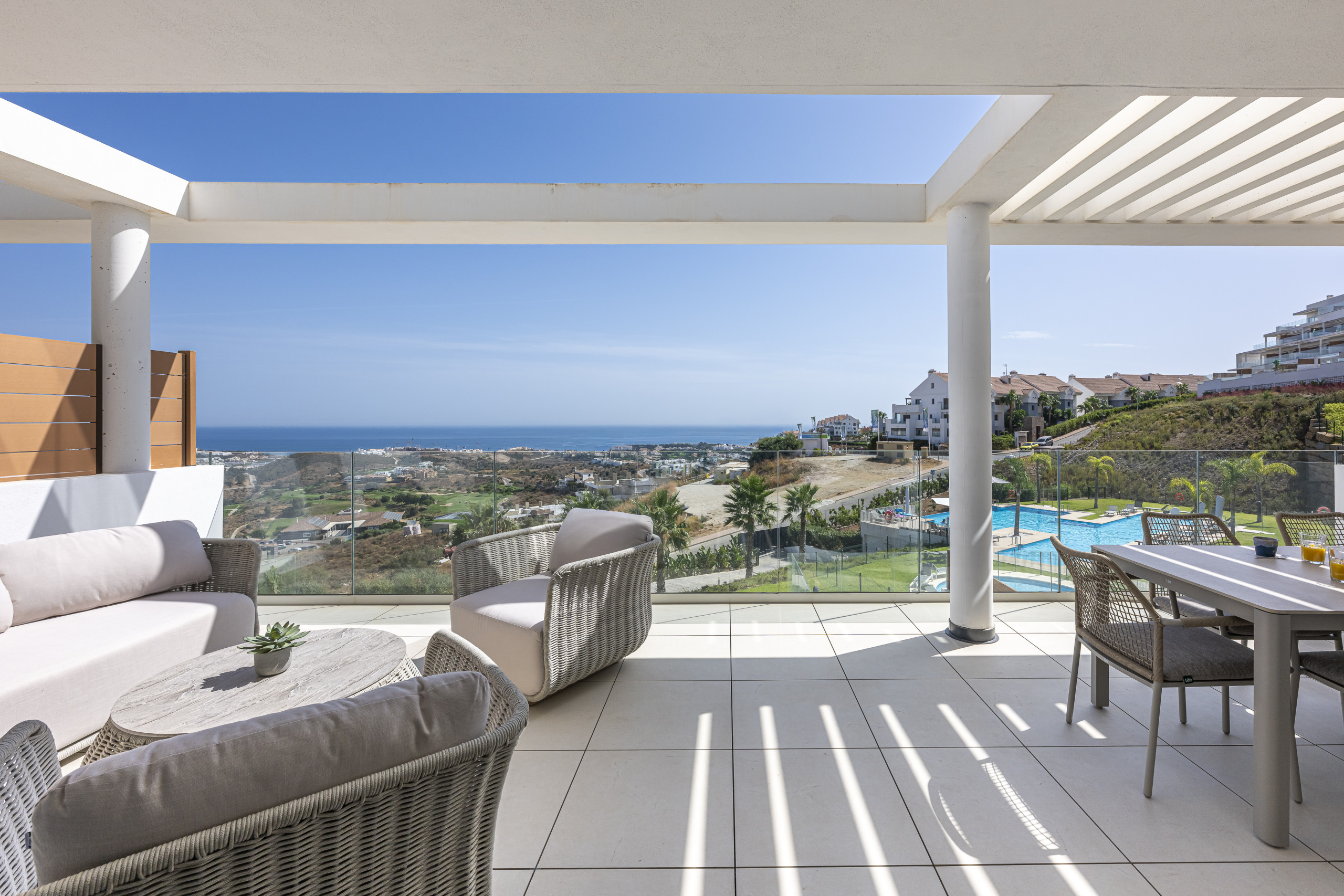 Descubra este moderno y luminoso apartamento de 2 dormitorios ubicado en el exclusivo complejo residencial Dream Golf. Situado en una ubicación privilegiada en Mijas, esta vivienda en planta baja es perfecta para amantes del golf y familias que buscan un tranquilo refugio mediterráneo con el máximo confort.