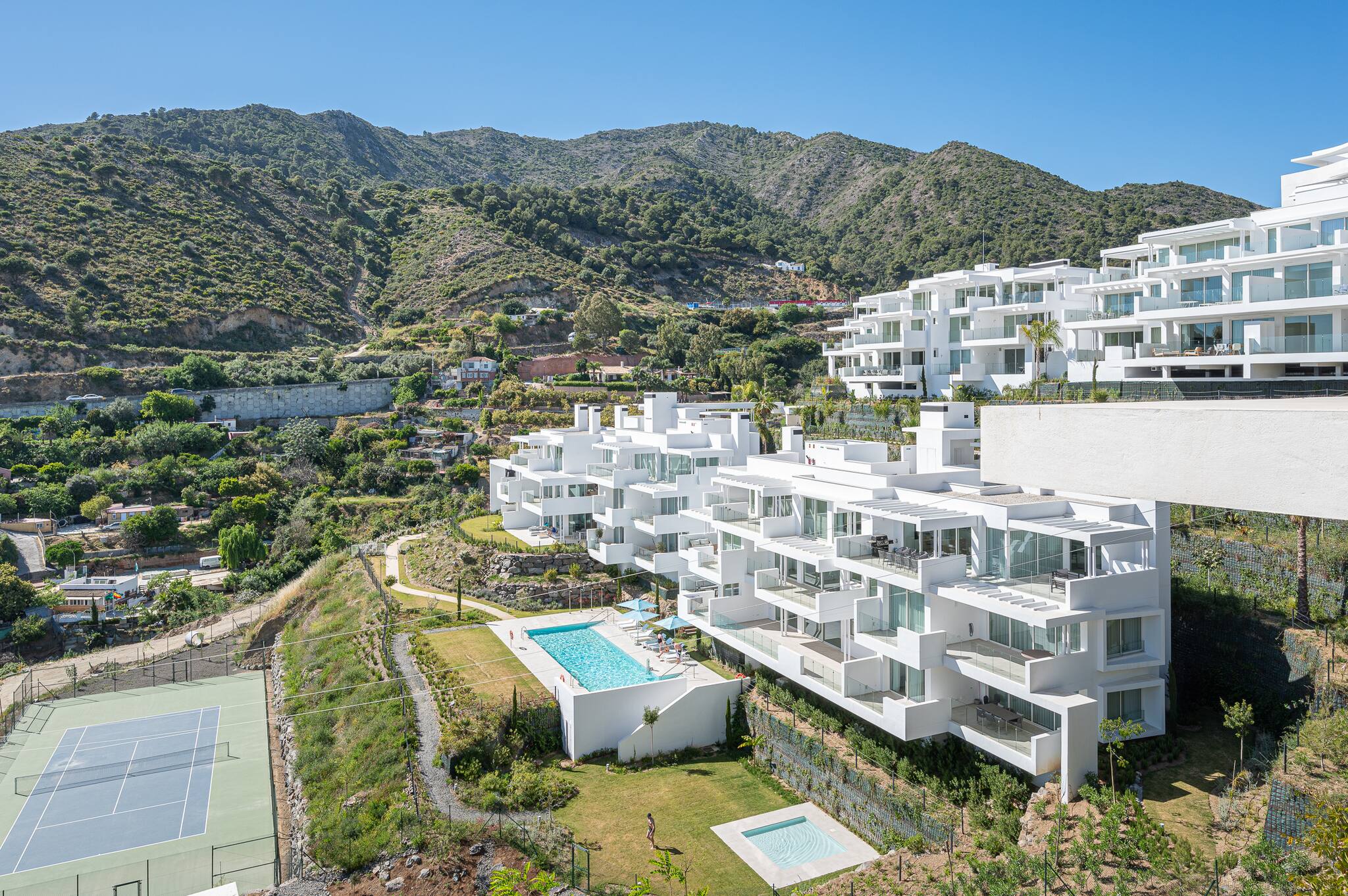 En 1987, nació La Mairena. Desarrollado por la familia Massoud, que se ha dedicado a mantener este exclusivo y bonito ejo residencial inmaculadamente mantenido para los más altos estandares. Ellos se han comprometido a construir en solo un 5% del terreno, para asegurar grandes areas verdes con robles protegidos y pinos acompasando este magnifico retiro en las colinas. La impresionante arquitectura Andaluza, se mezcla perfectamente con las fachadas y los colores de las casas y las montañas de alrededor nos acercan hacia el mar Mediterraneo. A un tiro de piedra de la costa, la famosa ciudad de Marbella y Puerto Banus, este acogedor escondite con su belleza infinita, paz y tranquilidad, es un cielo garantizado para unas vacaciones.