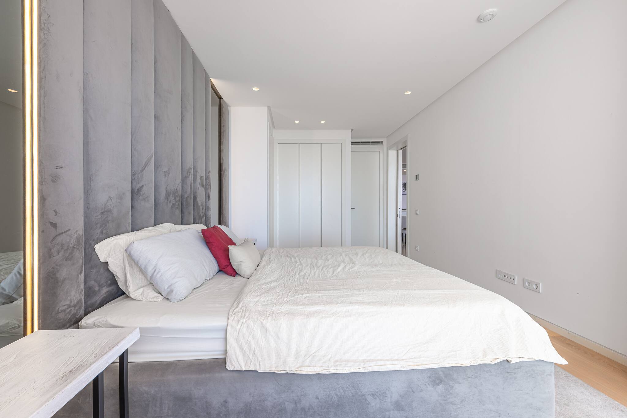 El piso tiene dos habitaciones. En el dormitorio principal tenéis una cómoda cama doble, aire acondicionado y un baño en suite.
