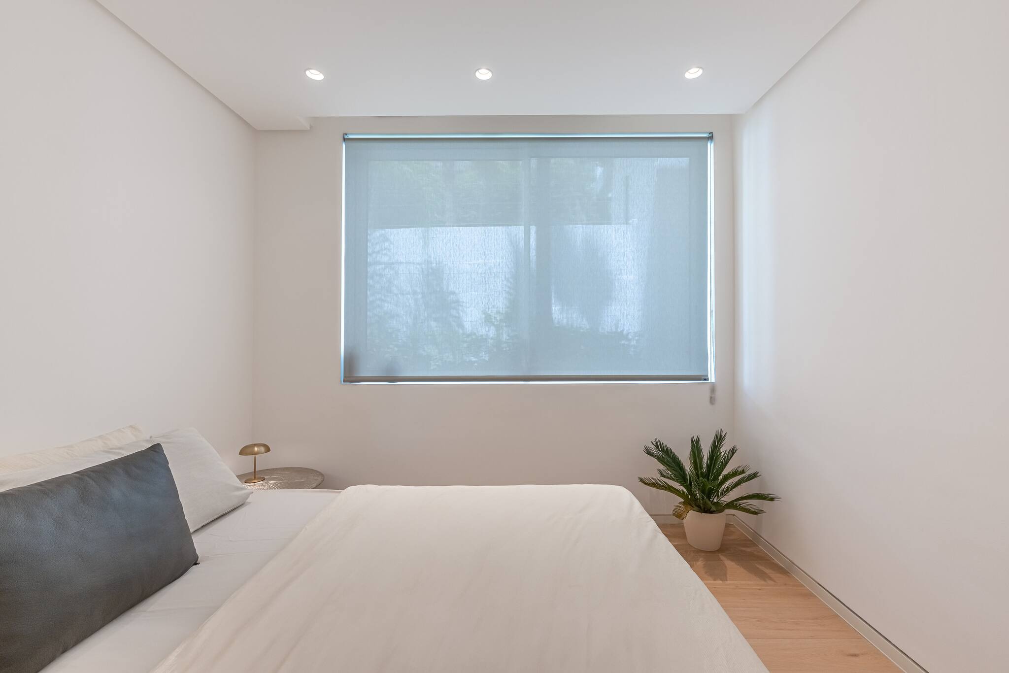 Dormitorio principal con cama king, grandes ventanales, armario empotrado y un diseño moderno que transmite calidez.