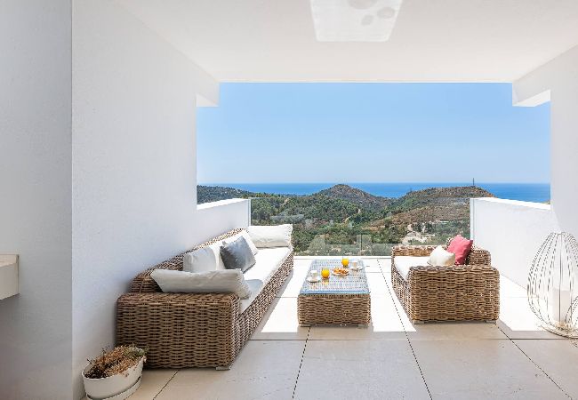 Bienvenidos a nuestro fantástico departamento ubicado en La Mairena, Elviria Alta. Zona de alta biodiversidad y a 15 minutos de Marbella donde la tranquilidad se disfruta con hermosas vistas del mar. Este fabuloso apartamento aloja hasta 4 huéspedes y se encuentra en un piso bajo.