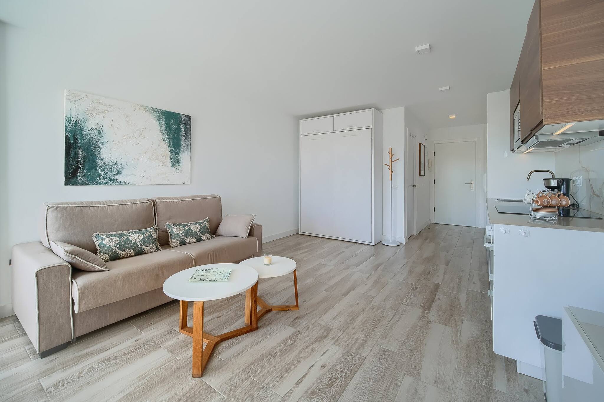 Al ingresar encontraremos un espacio cuidadosamente decorado que dispone de abundante iluminación natural. Los colores blancos y tostados del estudio os darán una sensación de calma y bienestar. ¡Os encantará pasar vuestras vacaciones aquí!