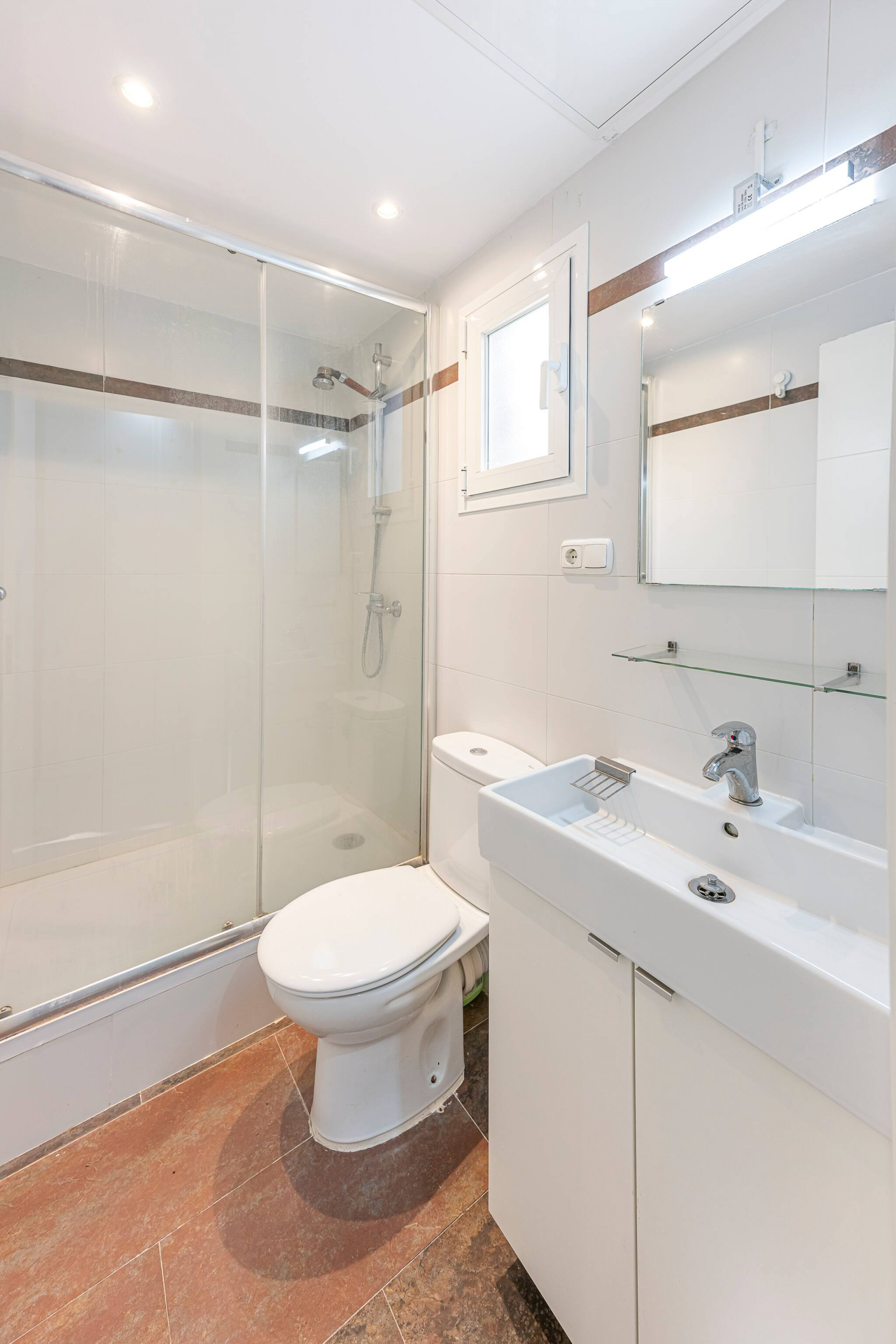 >Baño: El baño es luminoso y está equipado con lavamanos, espejo, váter, ducha y bañera.