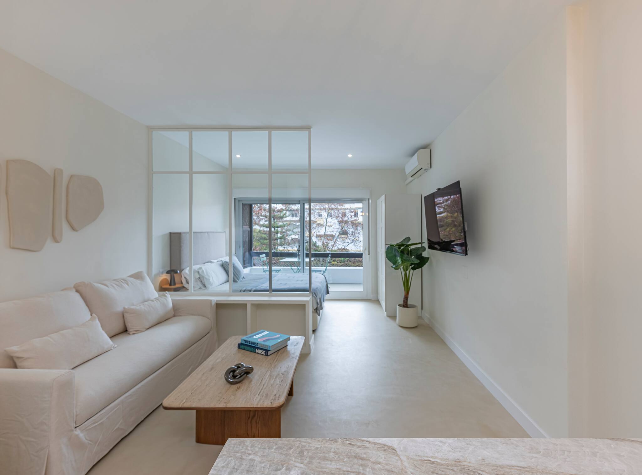 Luminoso y cómodo estudio en la famosa Milla de Oro a 500 metros de la playa. El apartamento está en la segunda planta y disponible para recibir 4 huéspedes.