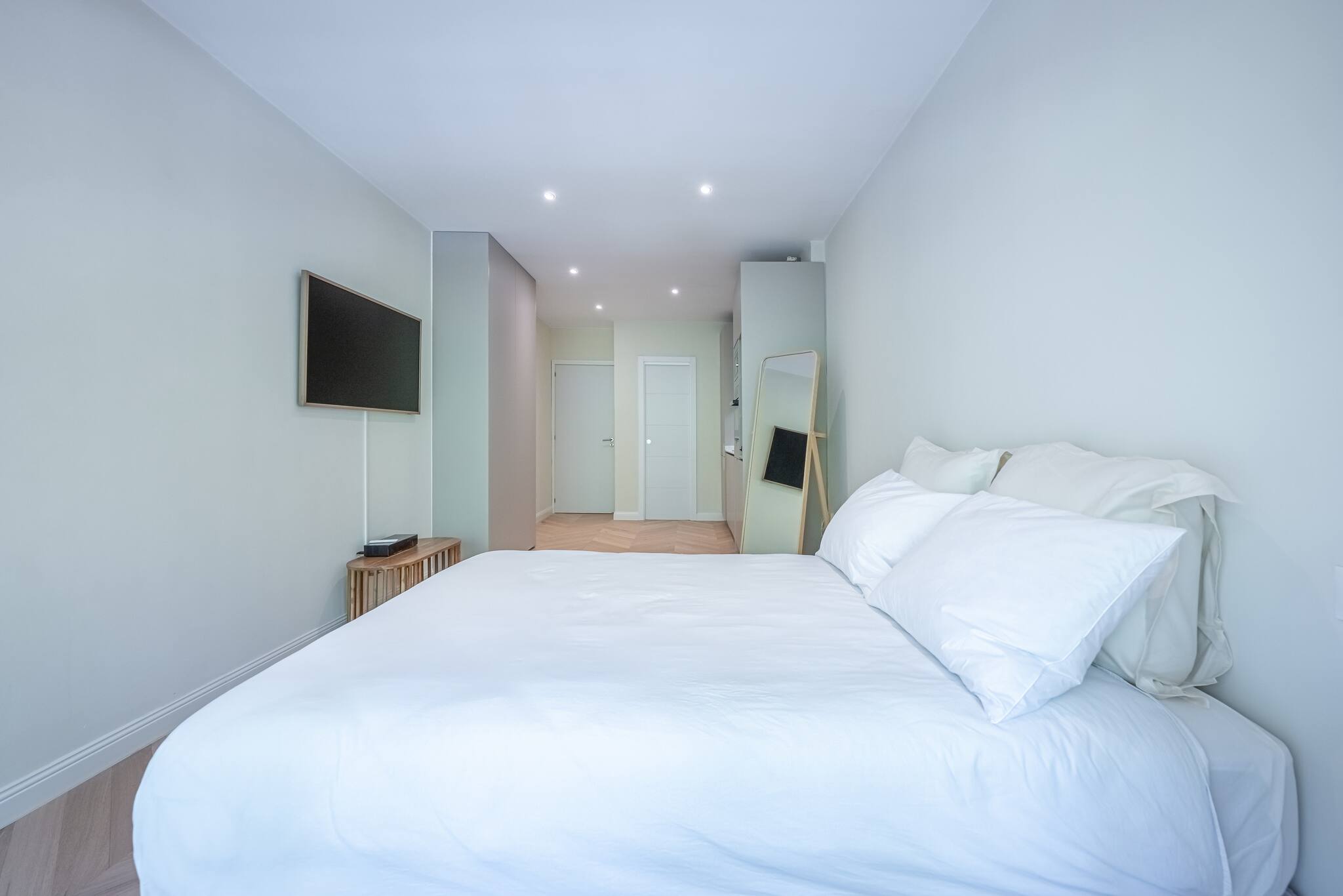 > Acogedor dormitorio con cama doble de 135 cm, pensado para brindar comodidad y tranquilidad. Dispone de un espejo y una TV para momentos de relax. Sus amplios ventanales ofrecen salida directa al balcón y llenan la estancia de luz natural durante todo el día.