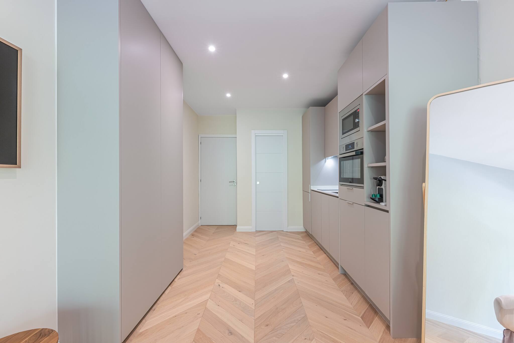 > Elegante cocina integrada, con líneas minimalistas y acabados de calidad. Dispone de vitrocerámica, horno, microondas y amplia capacidad de almacenaje, pensada para que disfrutes de la practicidad sin renunciar al diseño.