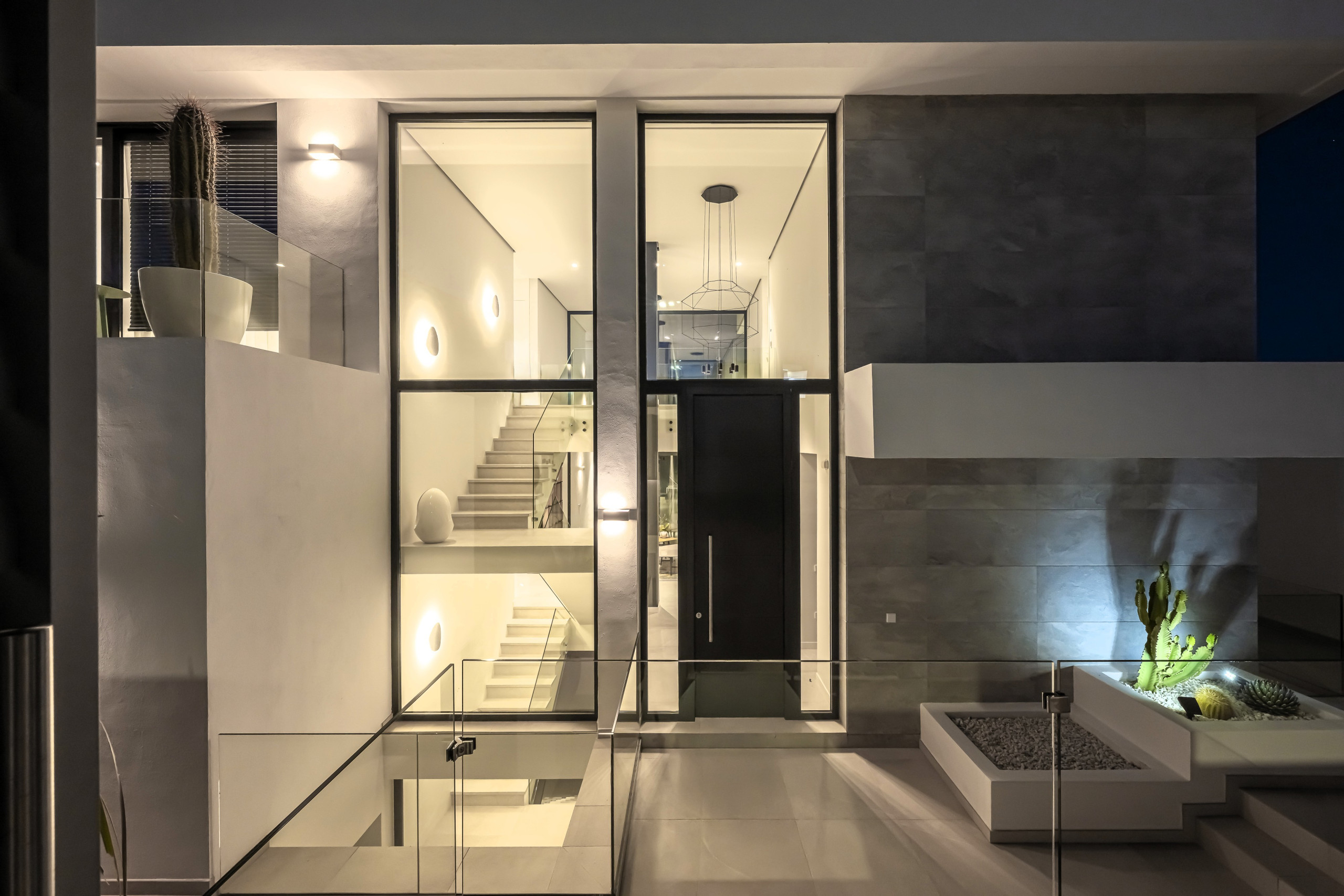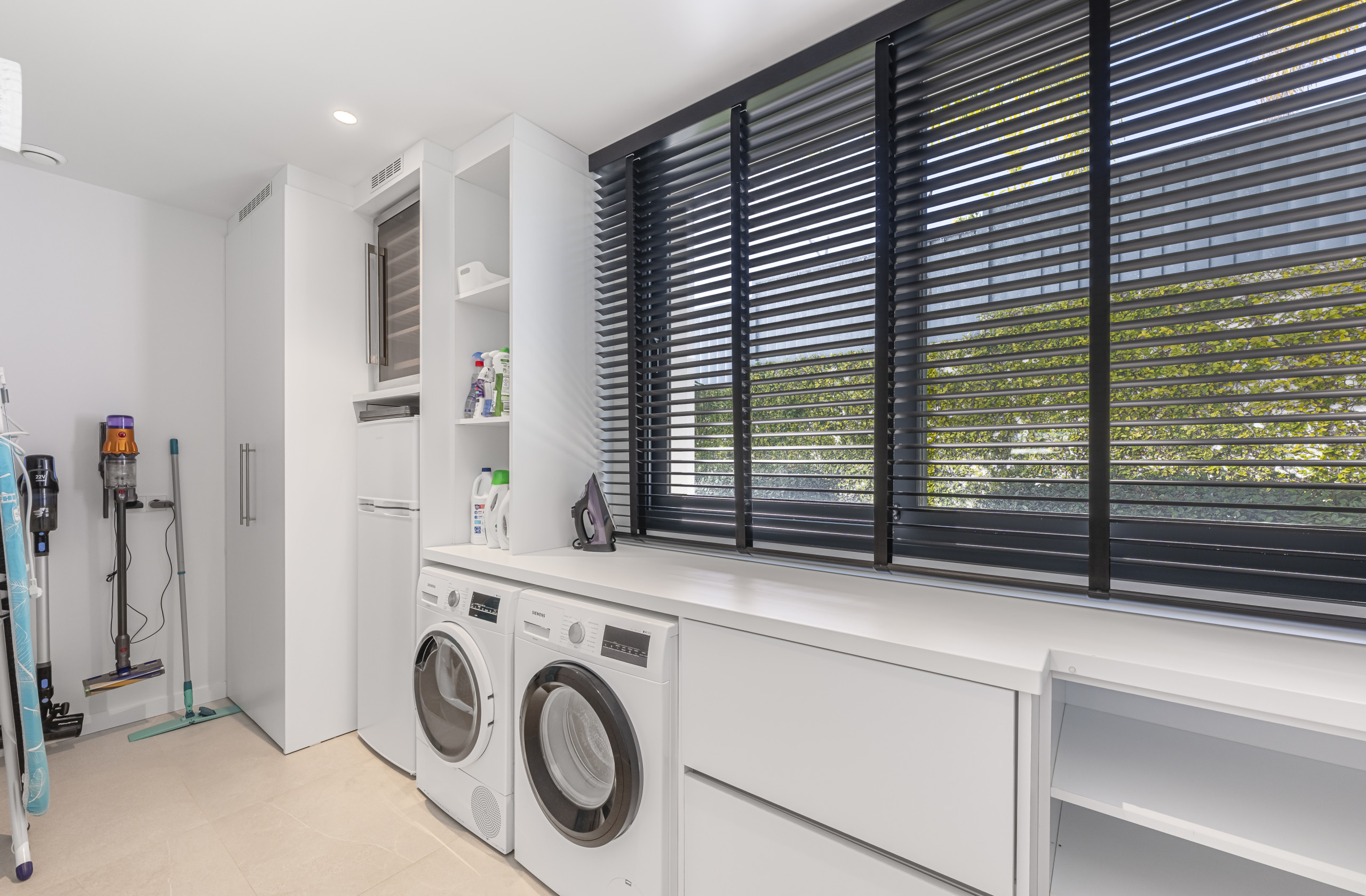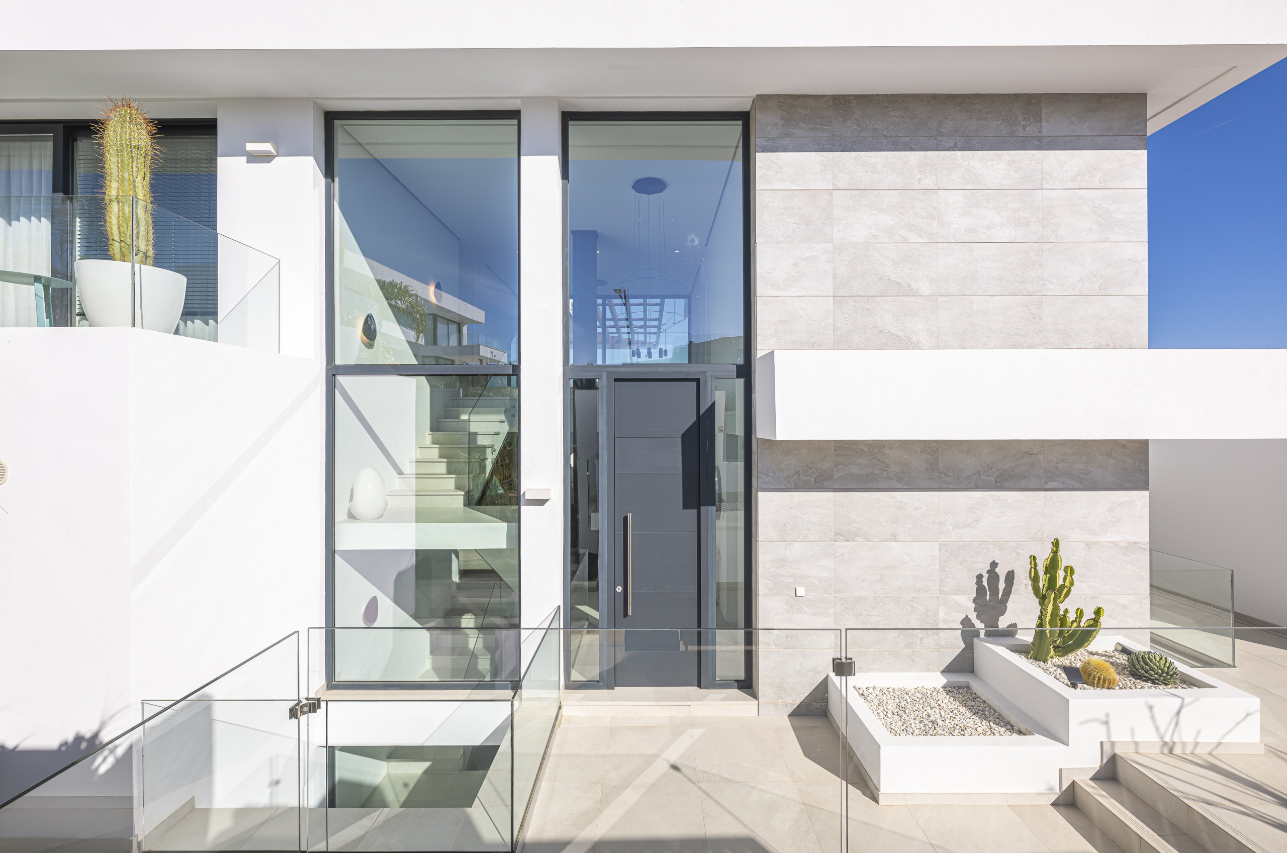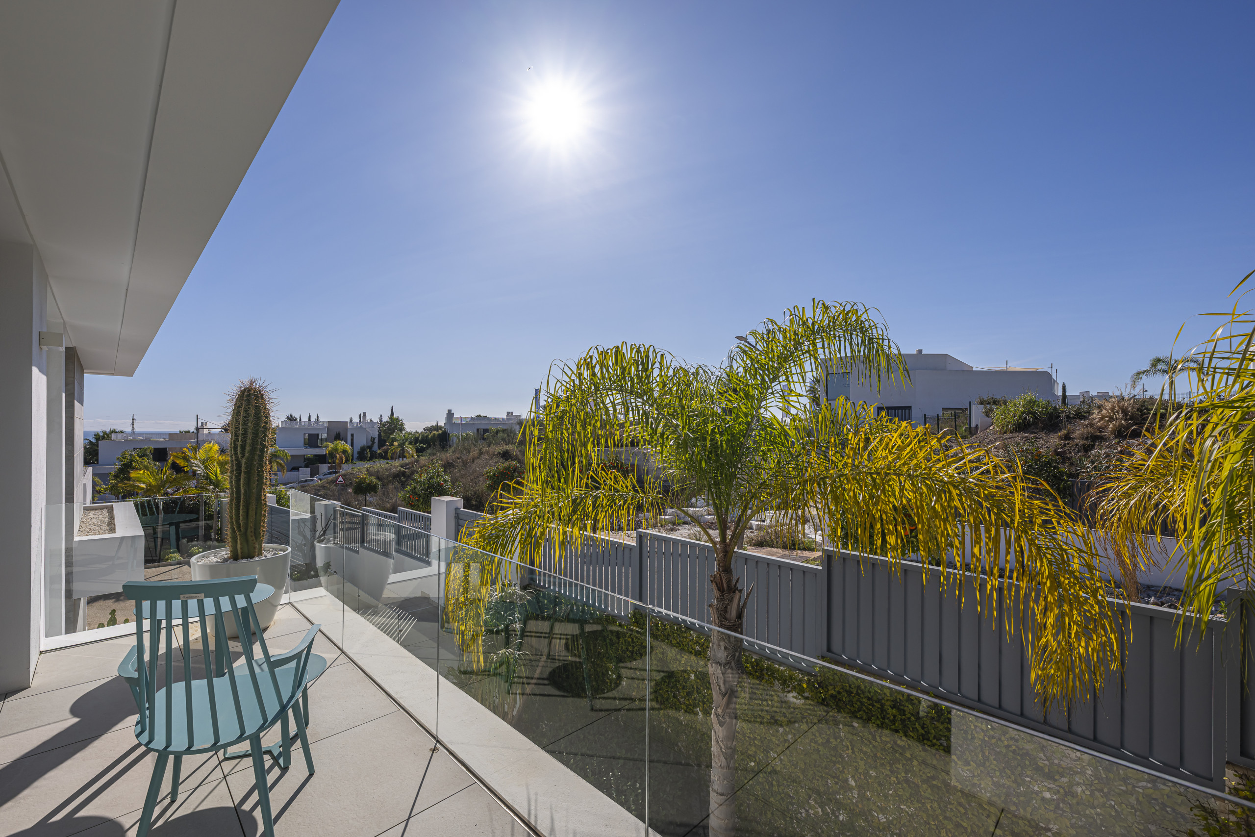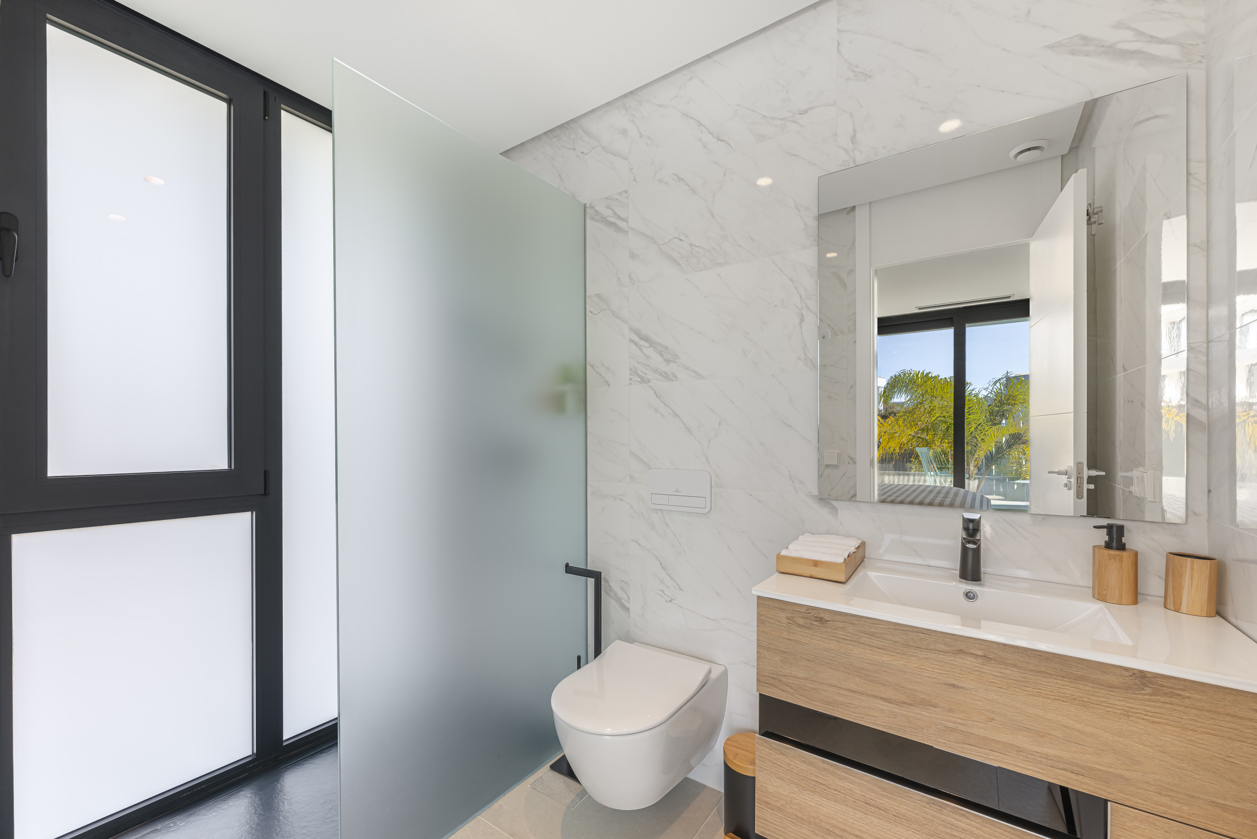 La zona exterior está diseñada para la relajación total. Disfrute de la piscina privada con cómodos tumbonas, un exuberante jardín mediterráneo y una refrescante ducha al aire libre. La pérgola motorizada le permite ajustar la sombra con solo pulsar un botón.