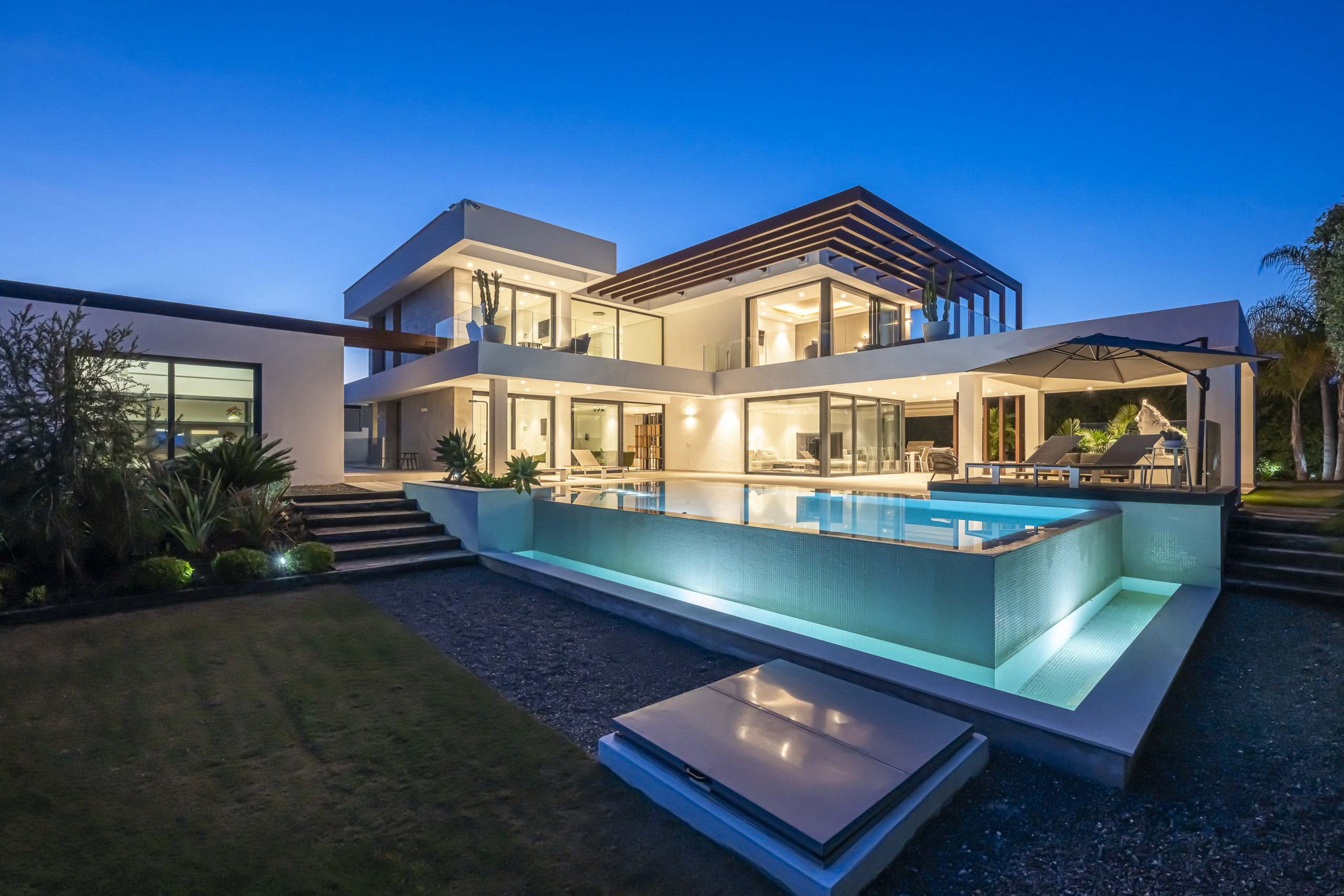 Experimente el punto culminante del lujo mediterráneo en el corazón de Estepona. La villa es una obra maestra del diseño moderno, que ofrece más de 1.000 m² de espacio interior y exterior. Perfectamente adecuada para familias grandes o grupos de 10 personas, este santuario cuenta con una pérgola motorizada, un gimnasio privado y acabados de alta gama para una estancia inolvidable.