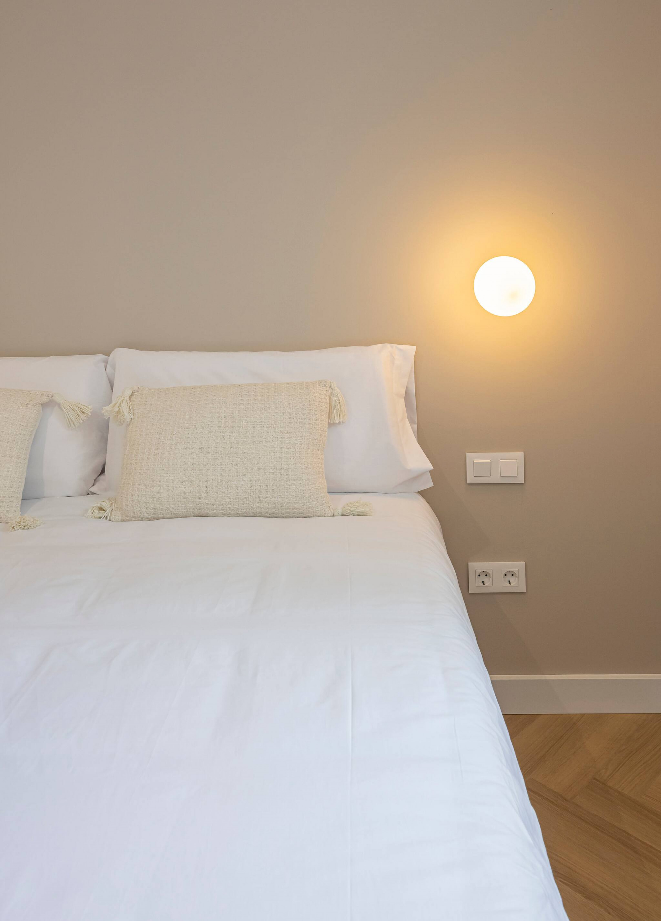 > Bedrooms: it has 3 bedrooms, the main one and second bethroom has kinkg size bed and the thrid one has a double bed, the three bedrooms have wardrobe. The master bedroom also has an en-suite bathroom and access to the balcony.