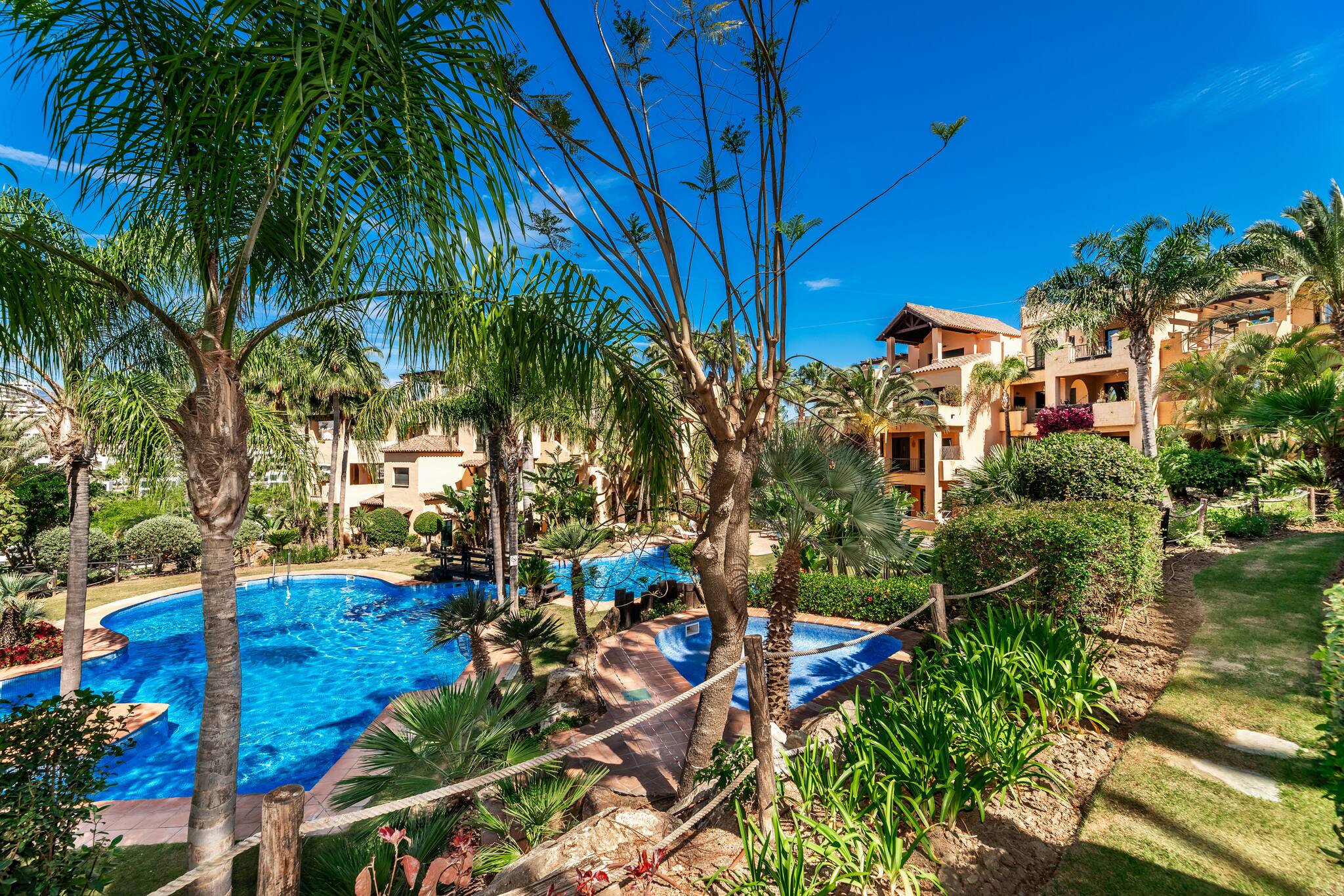 bathroom. From here there is access to the terrace. The second and third bedroom also have king-size beds. They have lockers to be able to unpack your belongings. From the second bedroom you can access a second terrace.