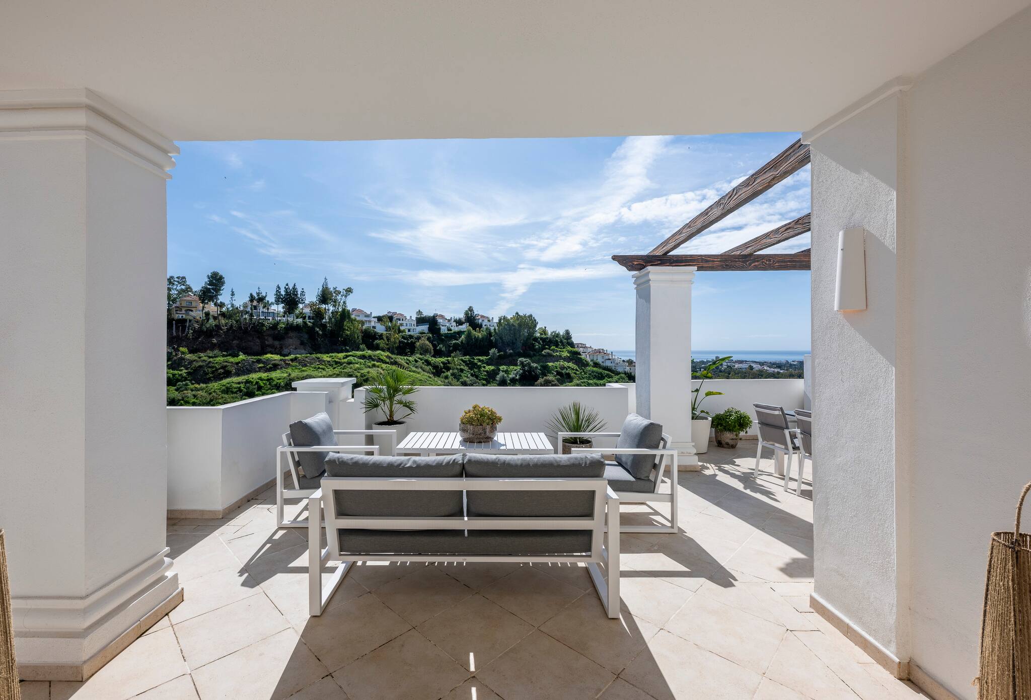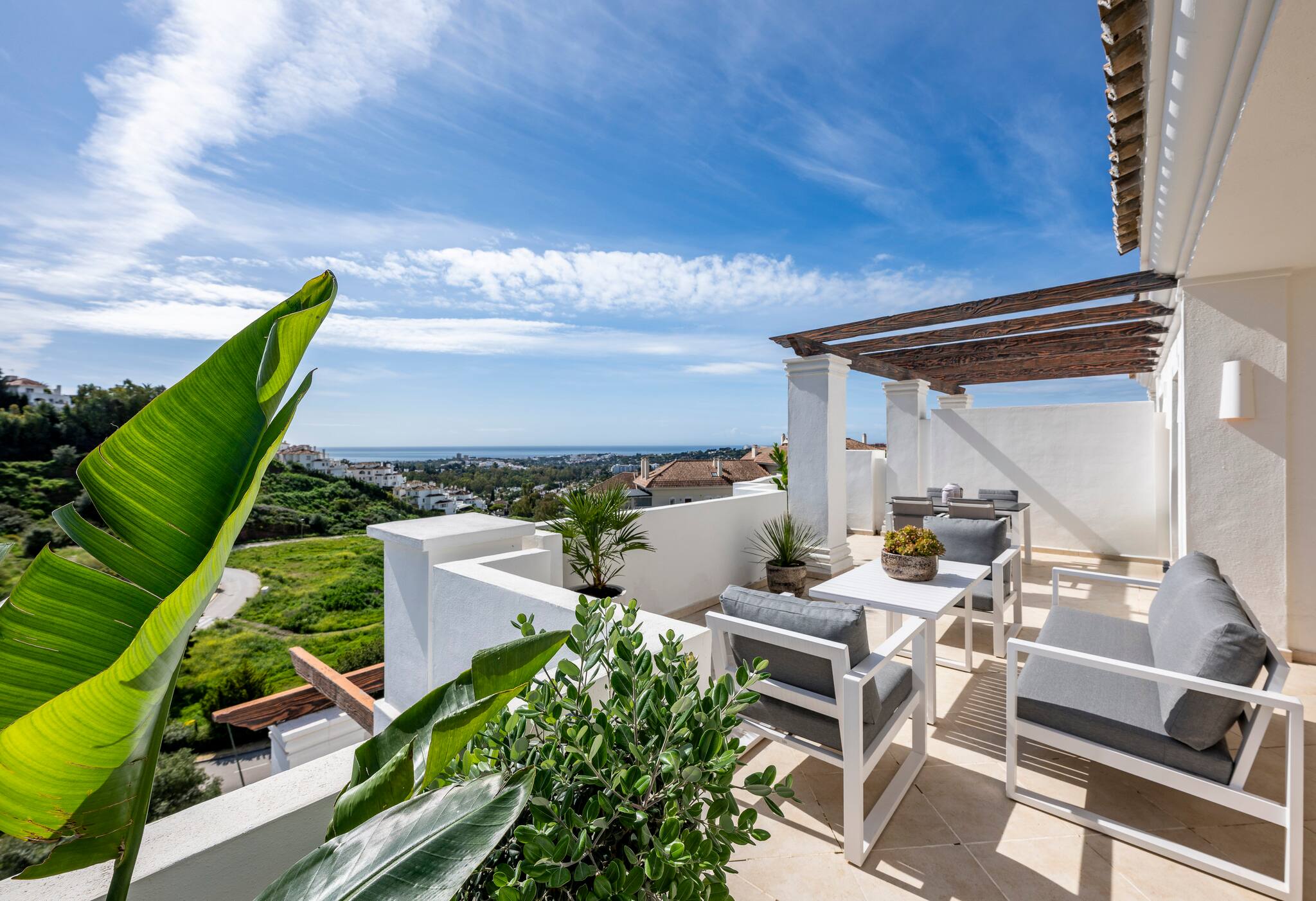 This elegant apartment in Nueva Andalucía is located on the second floor. Thoughtfully decorated to ensure a comfortable and pleasant stay, the flat can accommodate up to 4 guests.