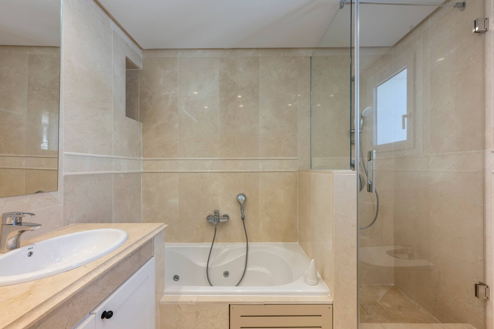 Finally, the bathroom has a spacious shower and is fully equipped.
