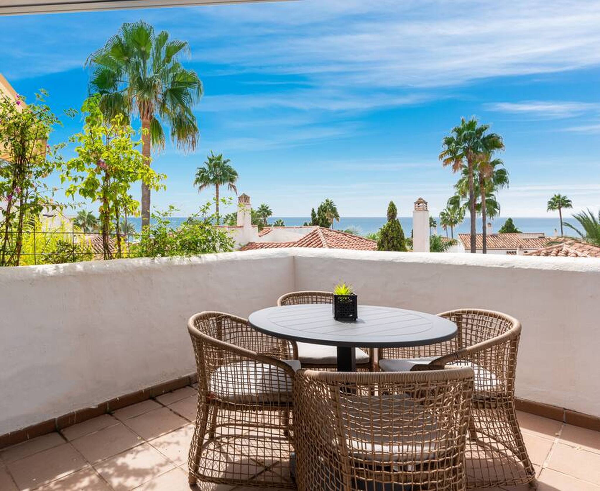 Direct access to a private furnished terrace, with comfortable outdoor sofas to enjoy the climate and calm of Marbella