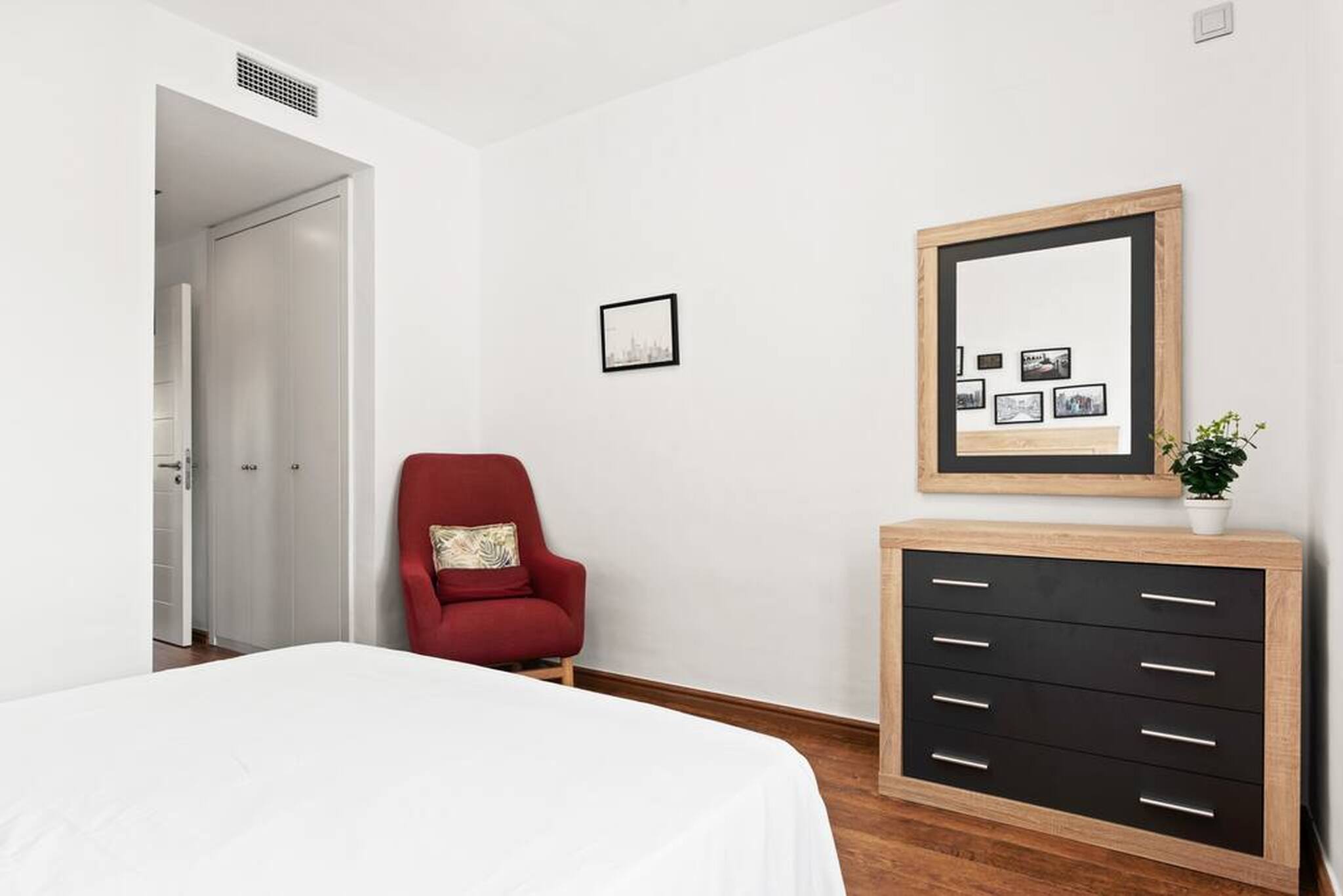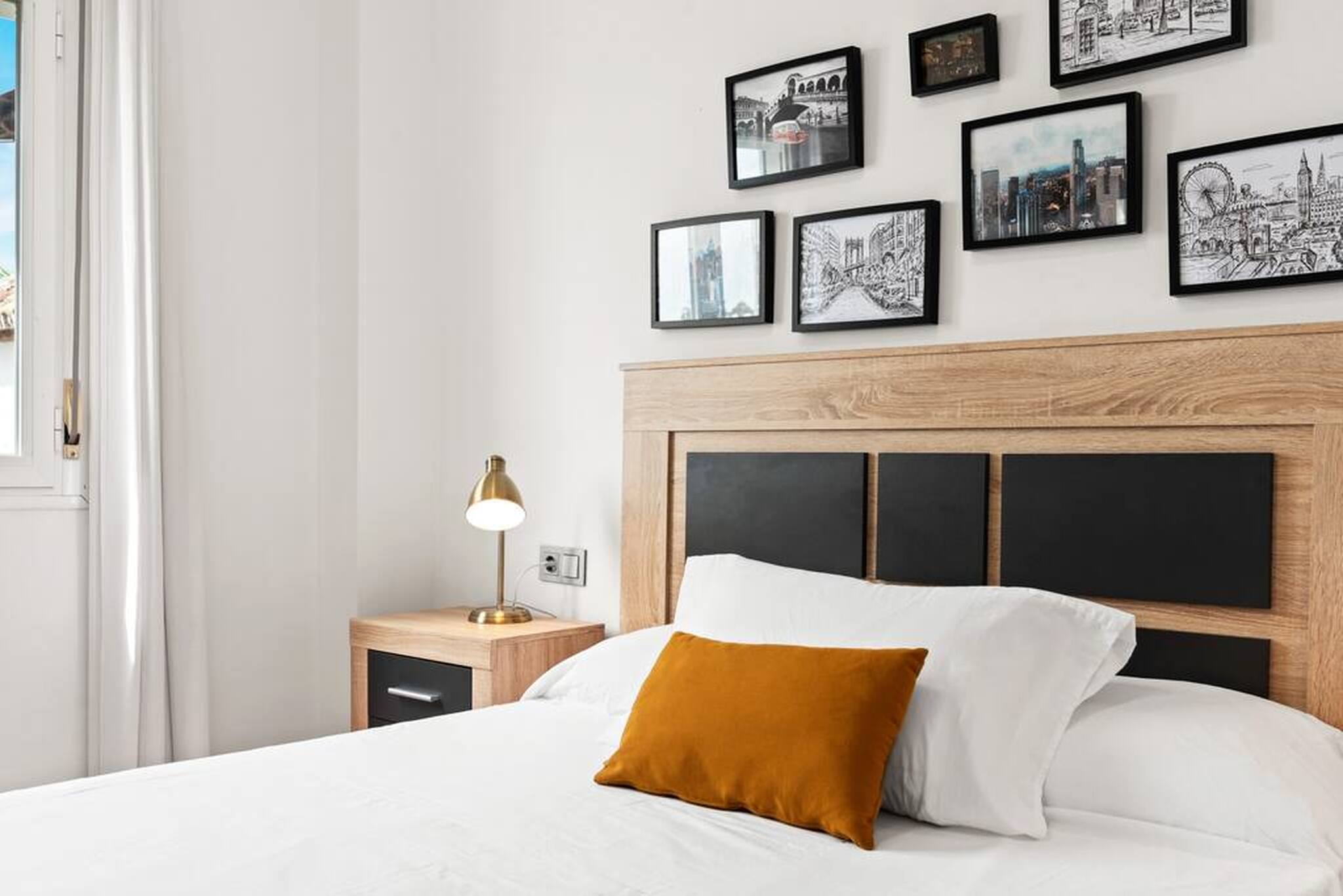 >Main bedroom: The main bedroom features a double bed that ensures restful sleep. You will find a bedside table with a lamp, perfect for reading before bed. The bedroom also has a spacious wardrobe to store your belongings and a window with a view that invites relaxation from the moment you wake up. Here you will also find an ensuite bathroom.