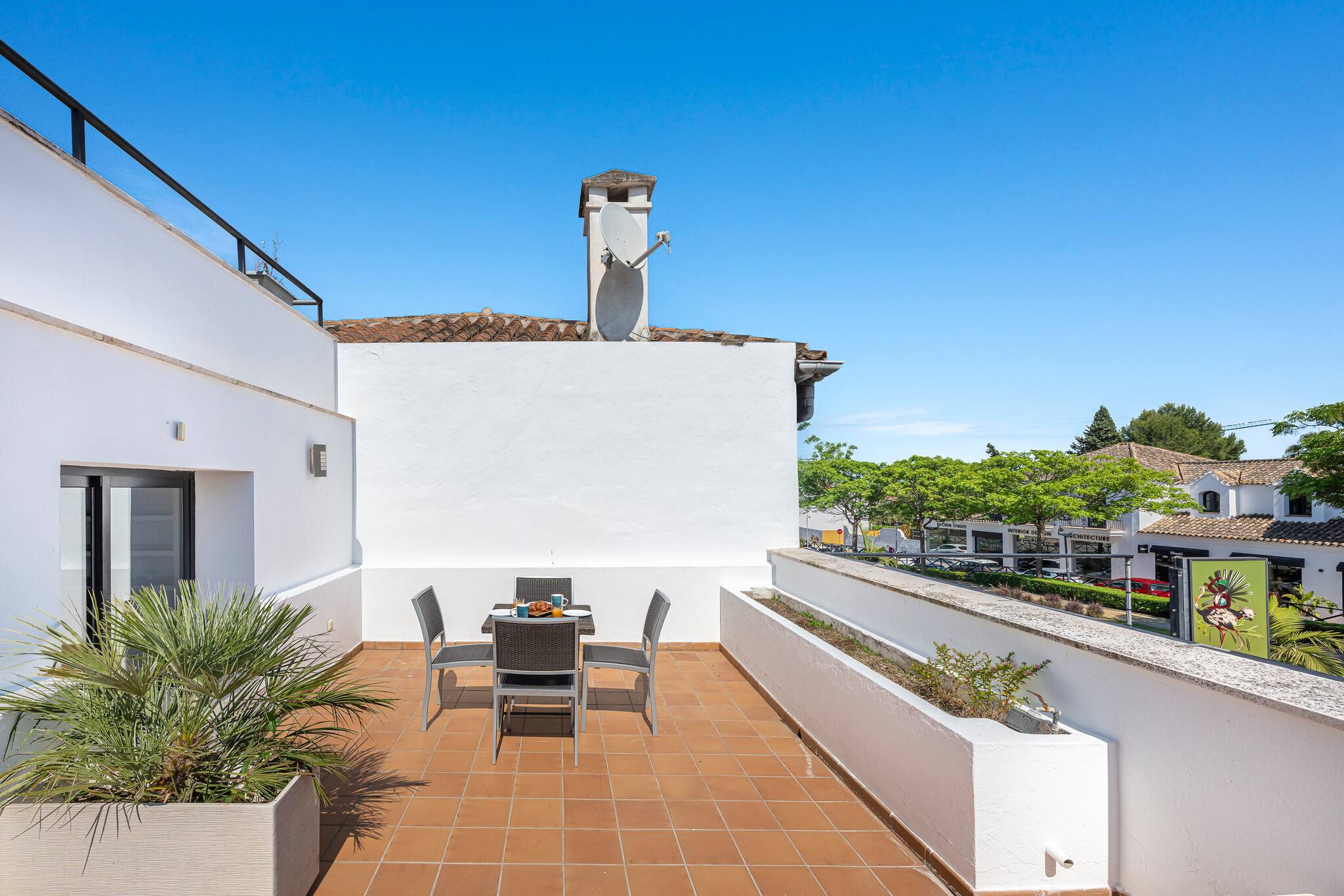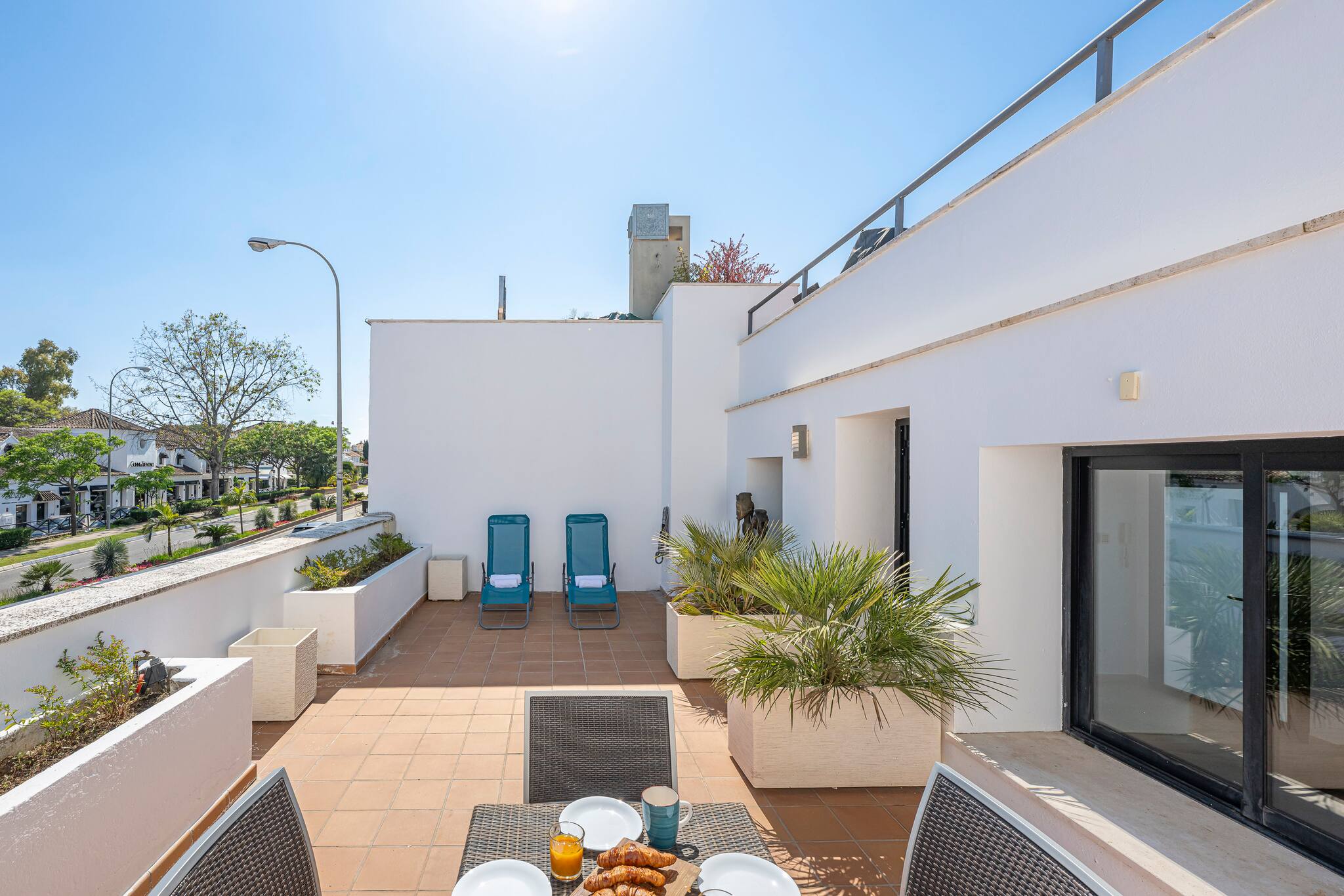 >Terrace: A lovely outdoor space with a table and chairs for four, ideal for sunny breakfasts or evening dinners. It also includes two sun loungers to relax and take in the views of the Golden Mile.