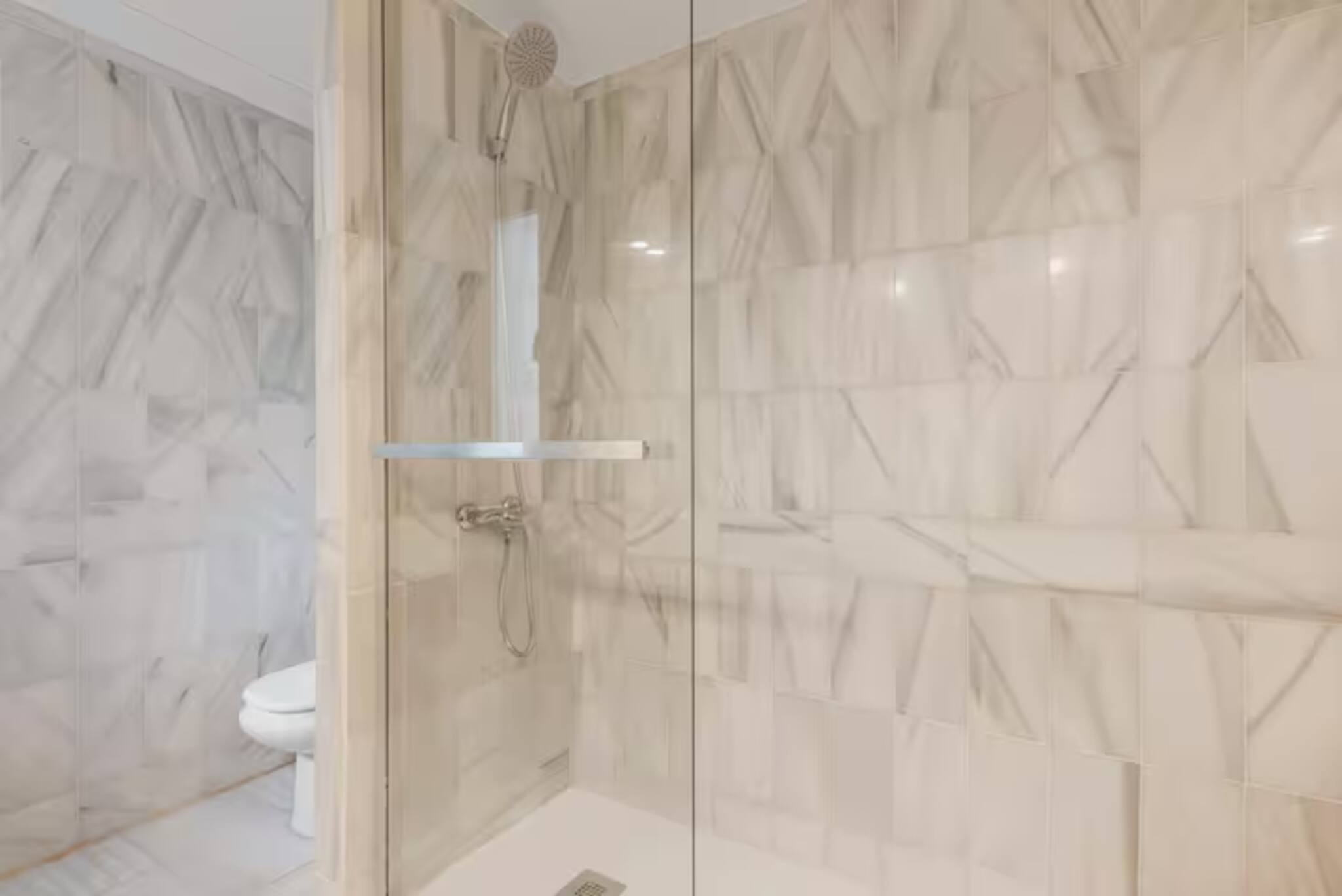Lastly, the bathroom has elegant details and great sink and shower and space.