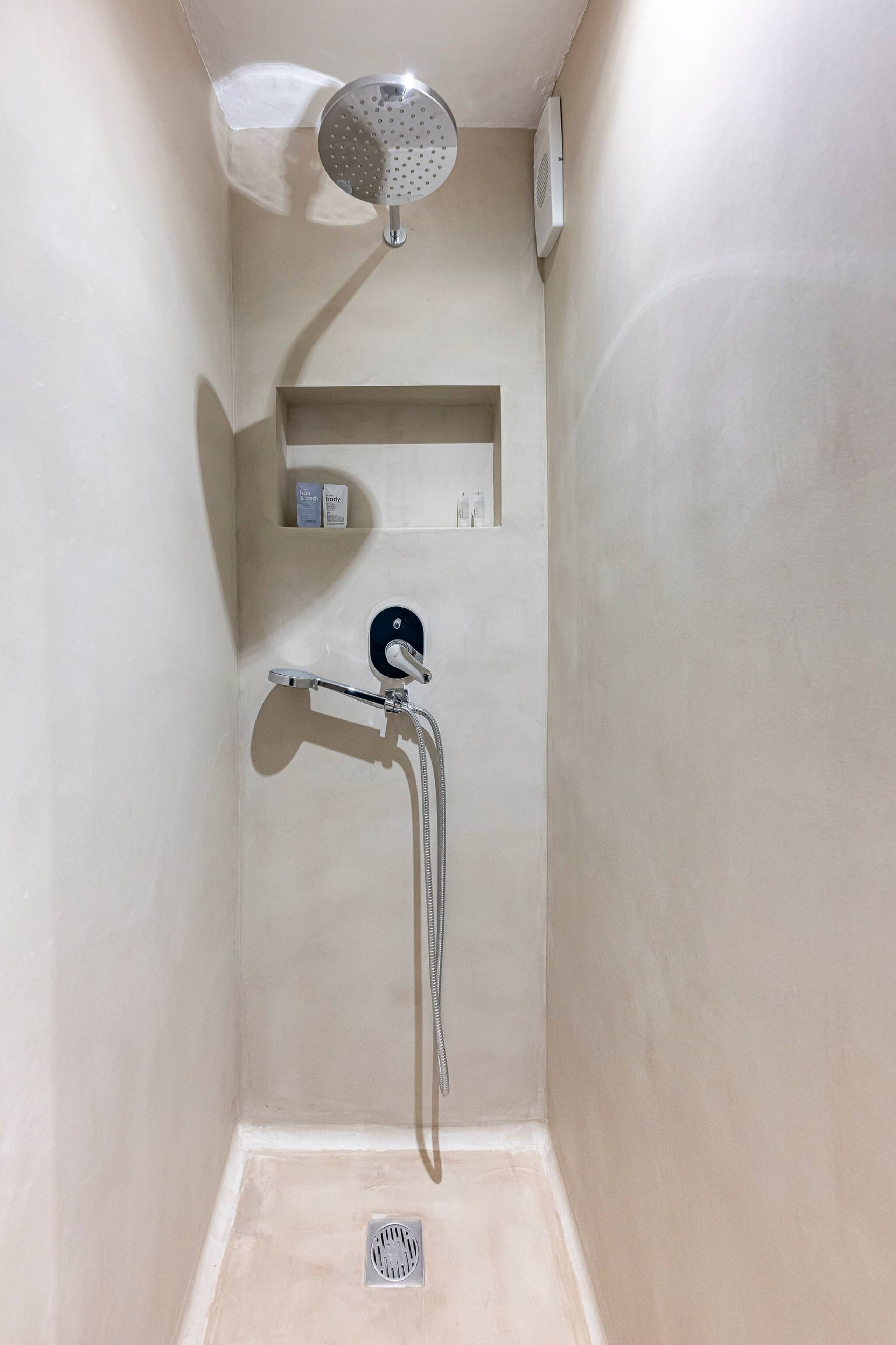 Finally, the bathroom has a spacious shower and is fully equipped.