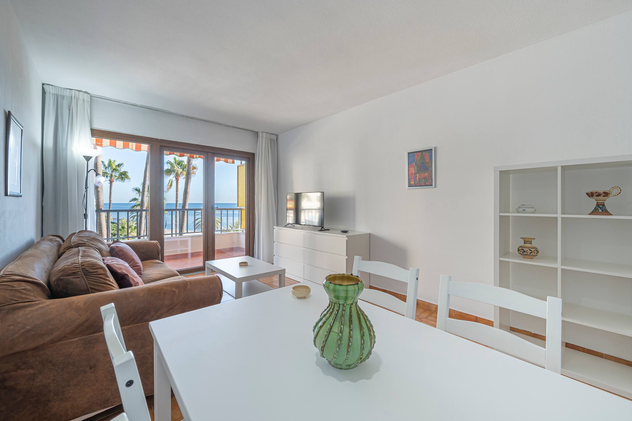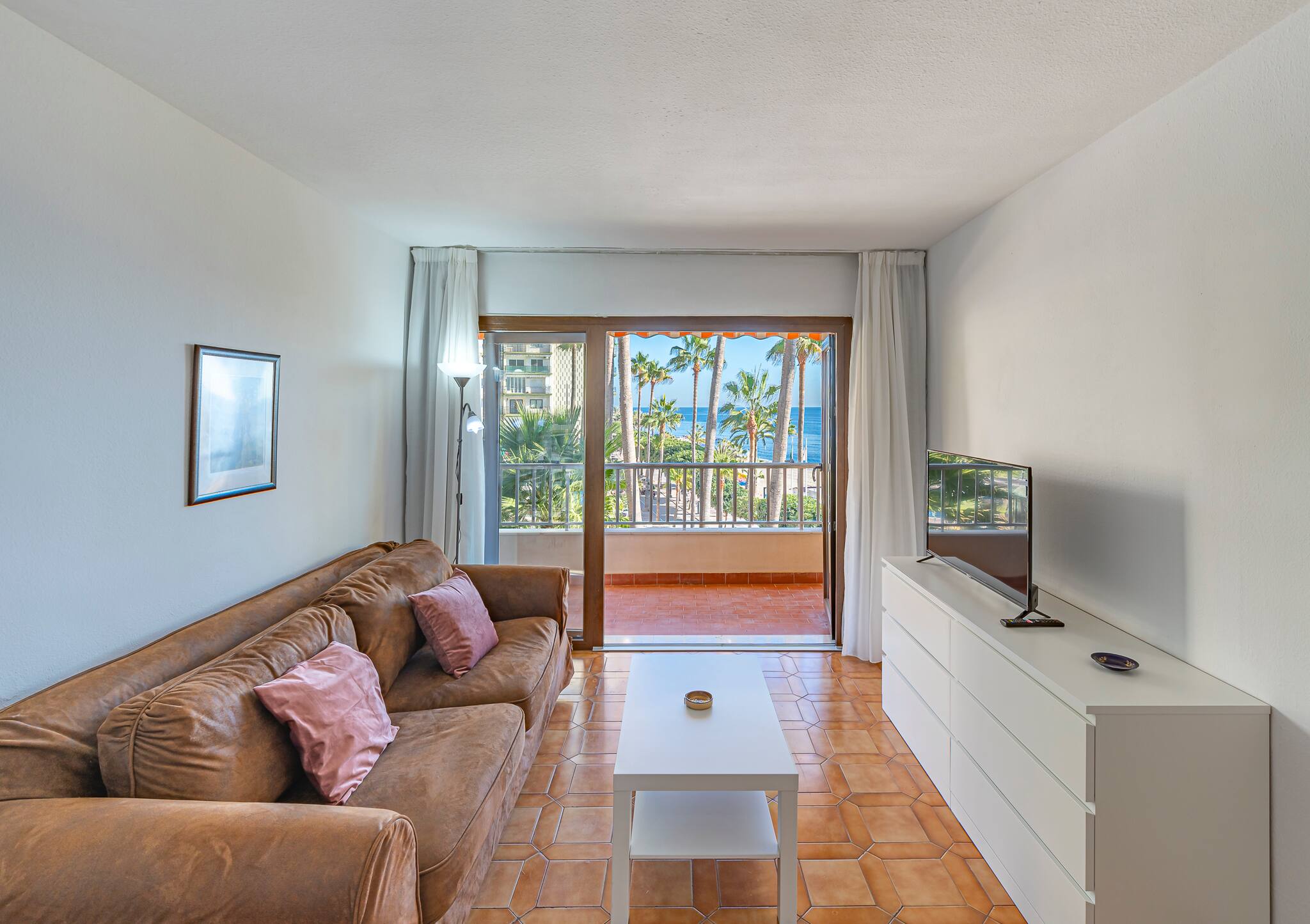 > Living area: with a comfortable two-seater sofa and a Smart TV that includes Netflix and cable. This part of the apartment has access to the balcony from where you can enjoy beautiful sea views.