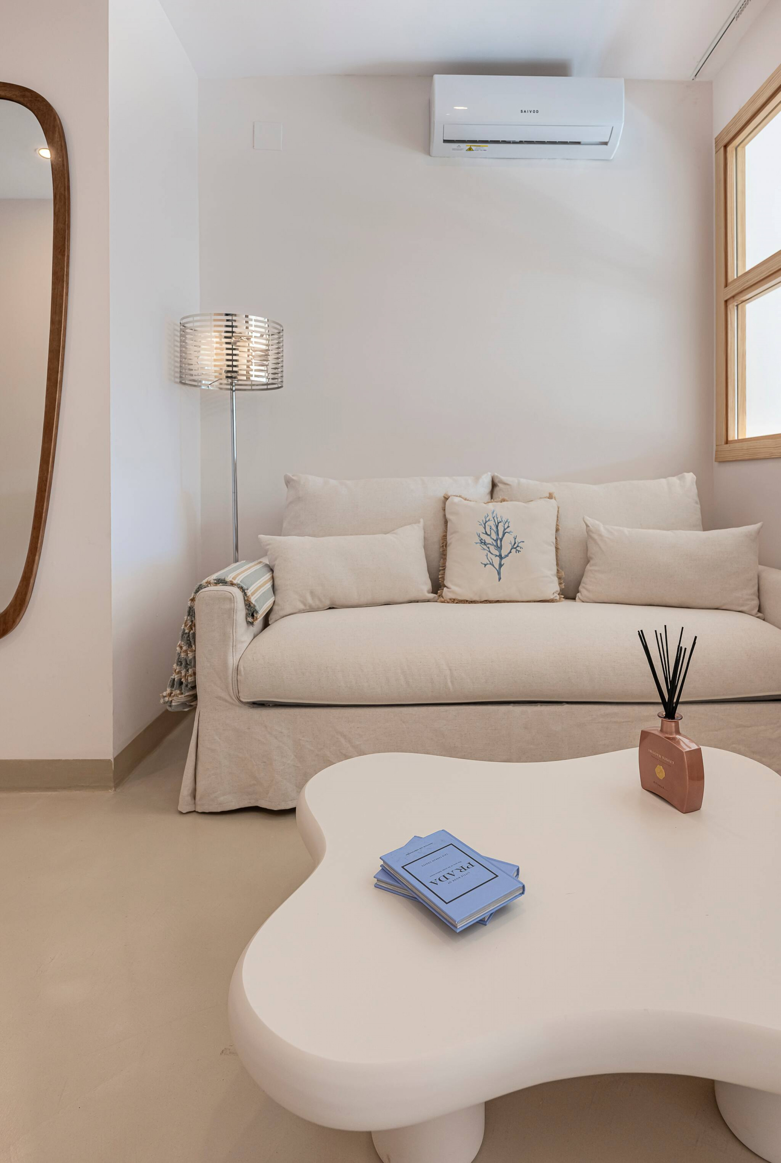 Designed with high-quality materials such as microcement, natural wood and soft blue tones, this modern and elegant space is created to offer you a comfortable, relaxing stay with plenty of style.