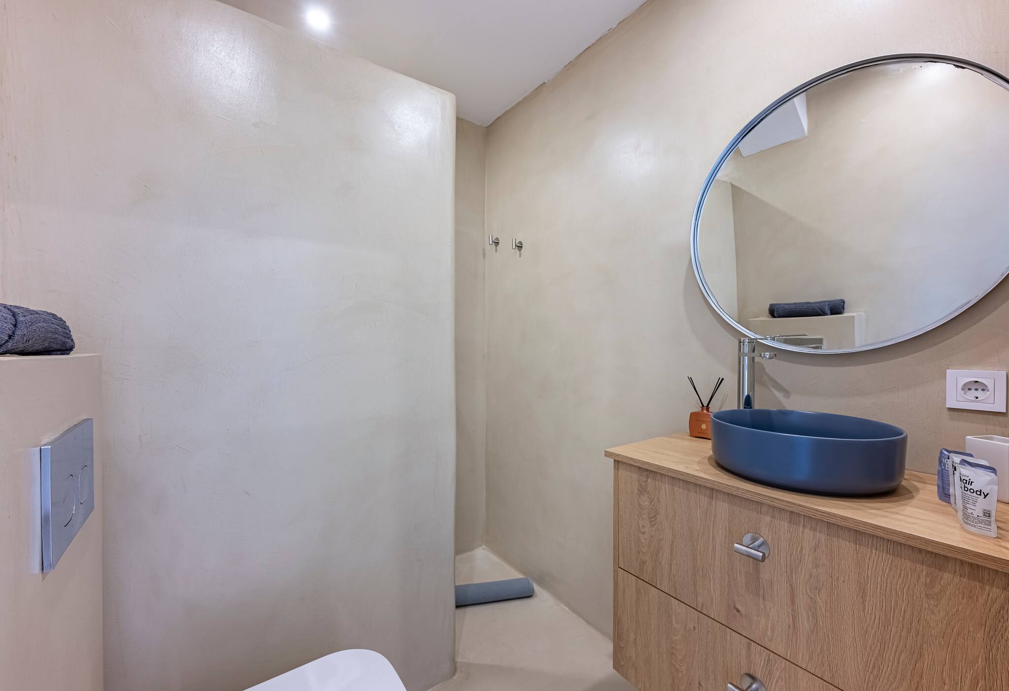 > Bathroom: There is a beautifully designed, fully equipped bathroom with great lighting. It includes a washbasin, mirror, toilet and a spacious microcement shower. The style is modern and carefully finished, offering both functionality and comfort.