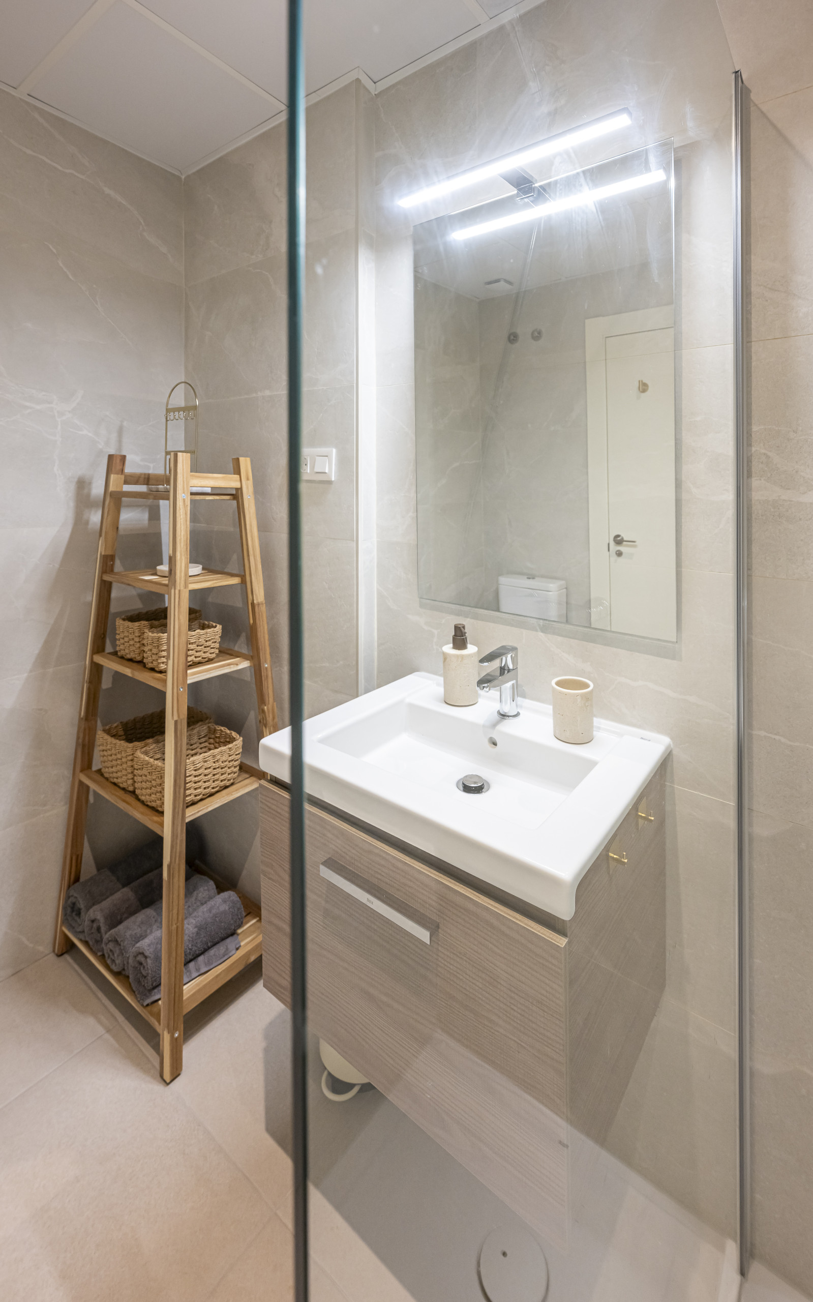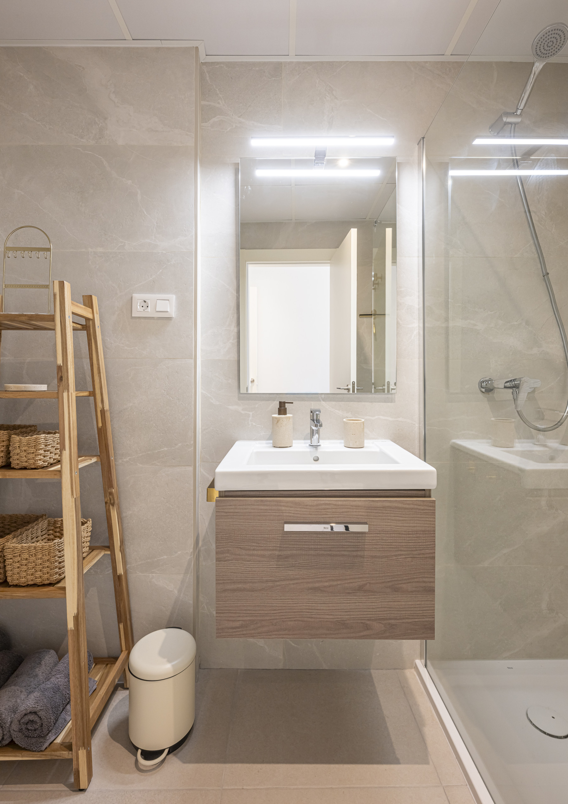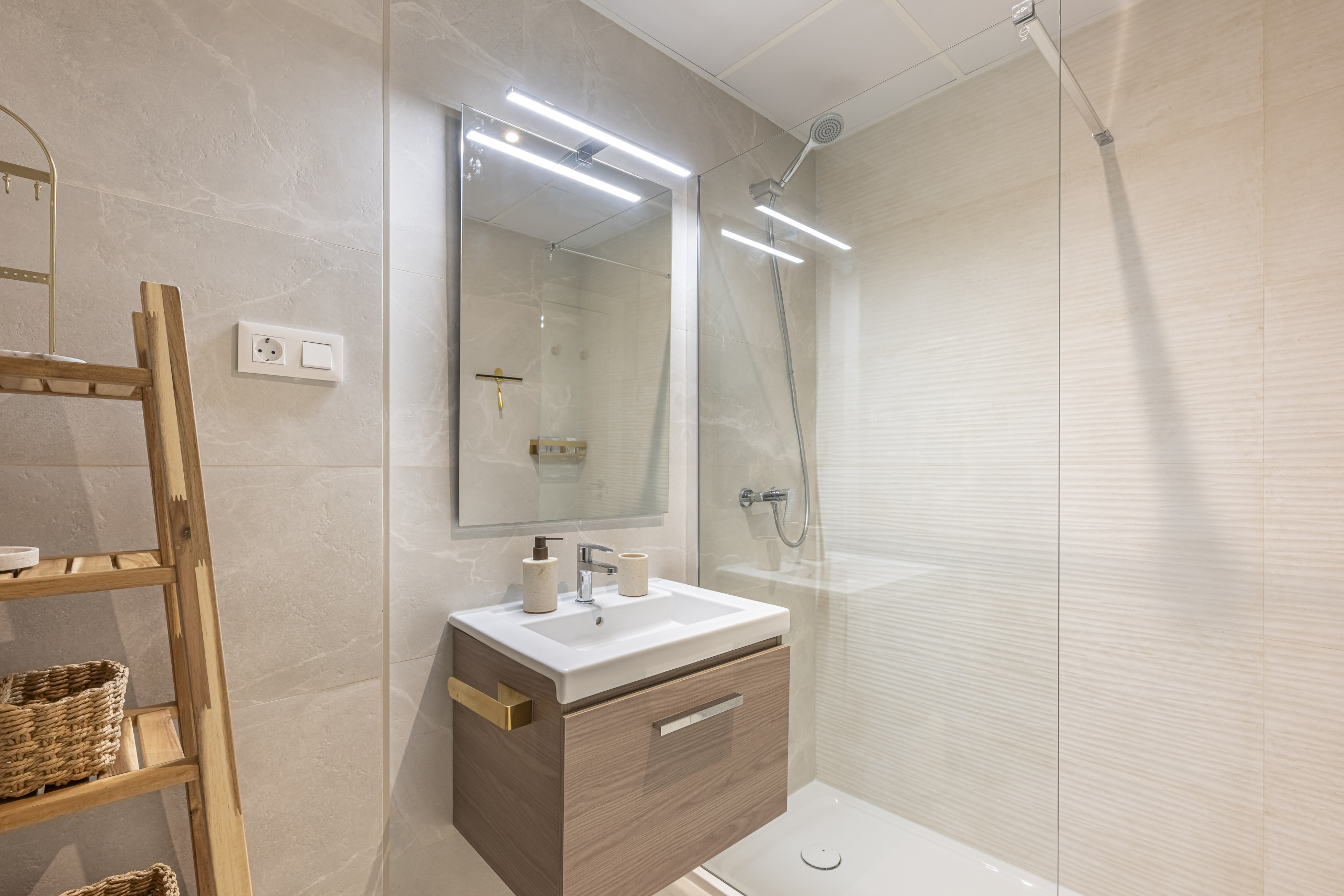 There are 2 full bathrooms with high-quality finishes, perfectly equipped for your stay.